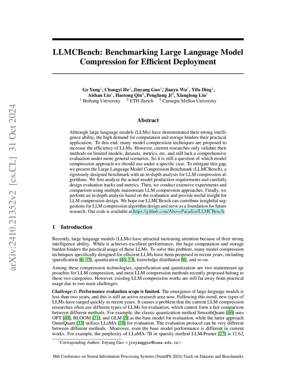 LLMCBench: Benchmarking Large Language Model Compression for Efficient