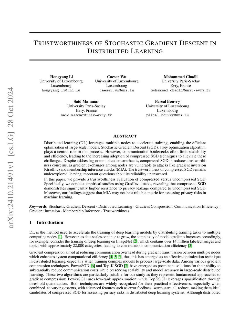 Trustworthiness of Stochastic Gradient Descent in Distributed Learning