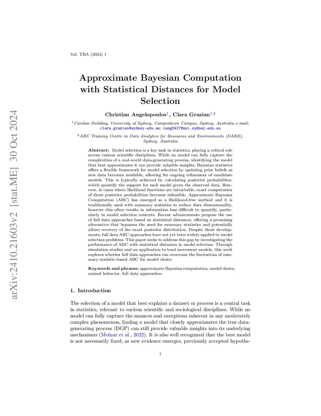 Model selection is a key task in statistics, playing a critical role across various scientific disciplines. While no model can fully capture the complexities of a real-world data-generating process, identifying the model that best approximates it can provide valuable insights. Bayesian statistics offers a flexible framework for model selection by updating prior beliefs as new data becomes available, allowing for ongoing refinement of candidate models. This is typically achieved by calculating posterior probabilities, which quantify the support for each model given the observed data. However, in cases where likelihood functions are intractable, exact computation of these posterior probabilities becomes infeasible. Approximate Bayesian Computation (ABC) has emerged as a likelihood-free method and it is traditionally used with summary statistics to reduce data dimensionality, however this often results in information loss difficult to quantify, particularly in model selection contexts. Recent advancements propose the use of full data approaches based on statistical distances, offering a promising alternative that bypasses the need for summary statistics and potentially allows recovery of the exact posterior distribution. Despite these developments, full data ABC approaches have not yet been widely applied to model selection problems. This paper seeks to address this gap by investigating the performance of ABC with statistical distances in model selection. Through simulation studies and an application to toad movement models, this work explores whether full data approaches can overcome the limitations of summary statistic-based ABC for model choice.