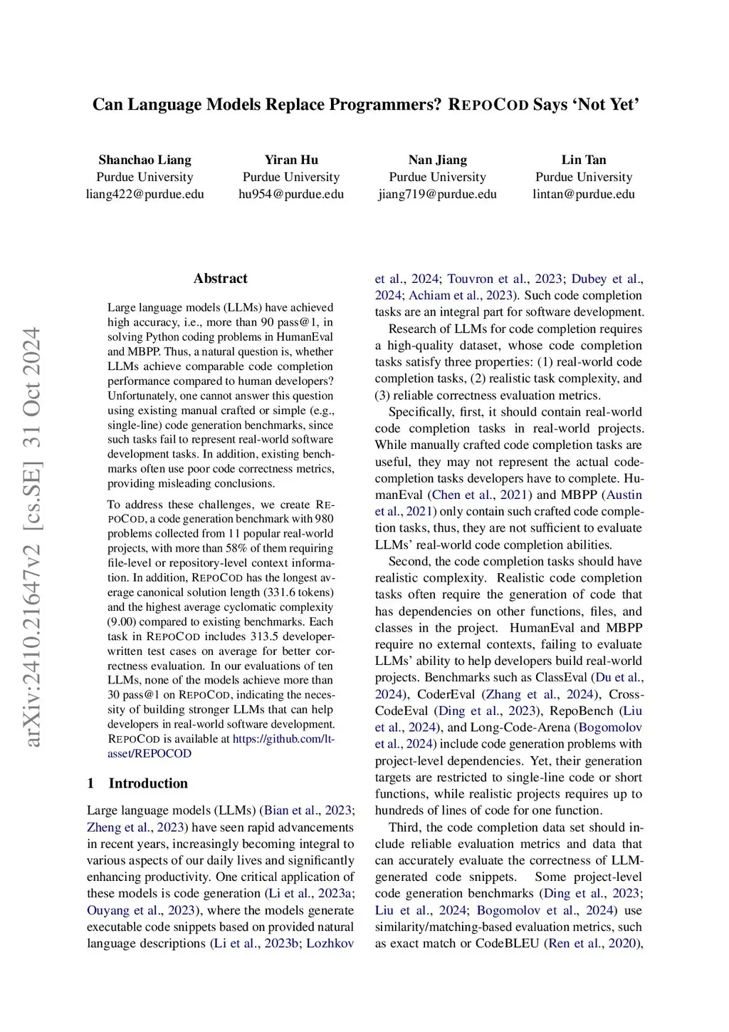Can Language Models Replace Programmers for Coding? REPOCOD Says Ñot Yet'