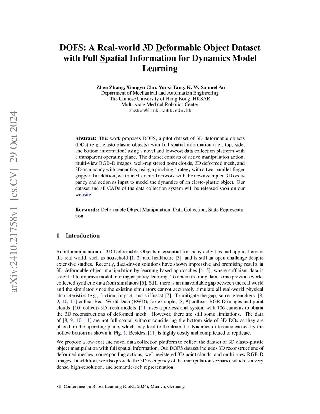 DOFS: A Real-world 3D Deformable Object Dataset with Full Spatial