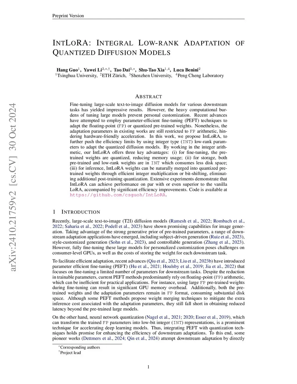 IntLoRA: Integral Low-rank Adaptation of Quantized Diffusion Models