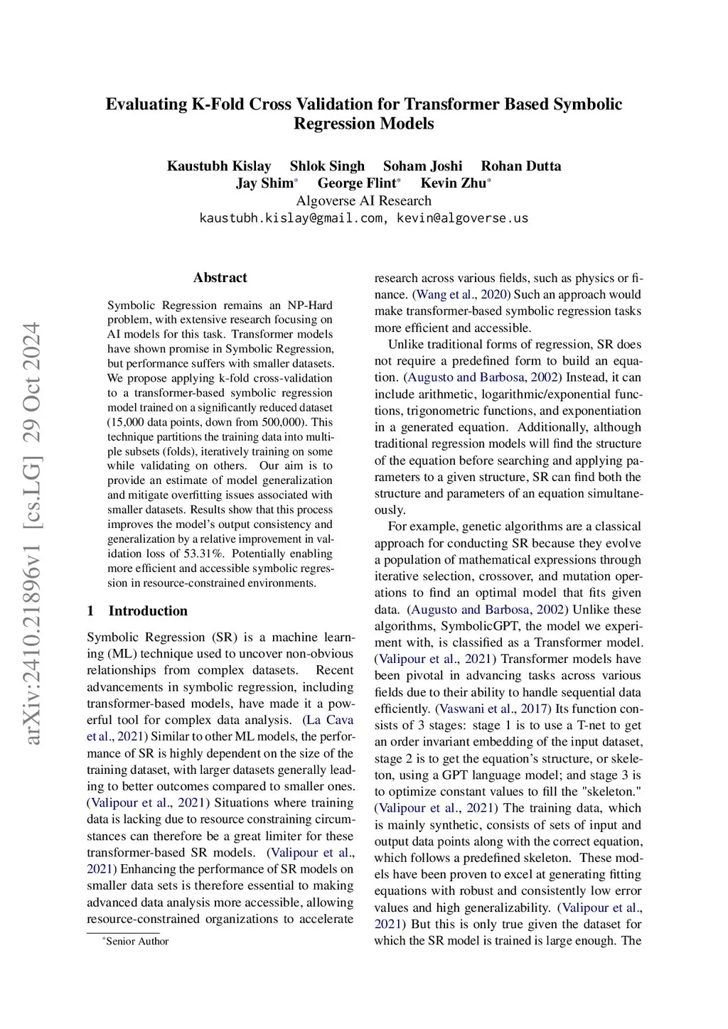 Symbolic Regression remains an NP-Hard problem, with extensive research focusing on AI models for this task. Transformer models have shown promise in Symbolic Regression, but performance suffers with smaller datasets. We propose applying k-fold cross-validation to a transformer-based symbolic regression model trained on a significantly reduced dataset (15,000 data points, down from 500,000). This technique partitions the training data into multiple subsets (folds), iteratively training on some while validating on others. Our aim is to provide an estimate of model generalization and mitigate overfitting issues associated with smaller datasets. Results show that this process improves the model's output consistency and generalization by a relative improvement in validation loss of 53.31%. Potentially enabling more efficient and accessible symbolic regression in resource-constrained environments.