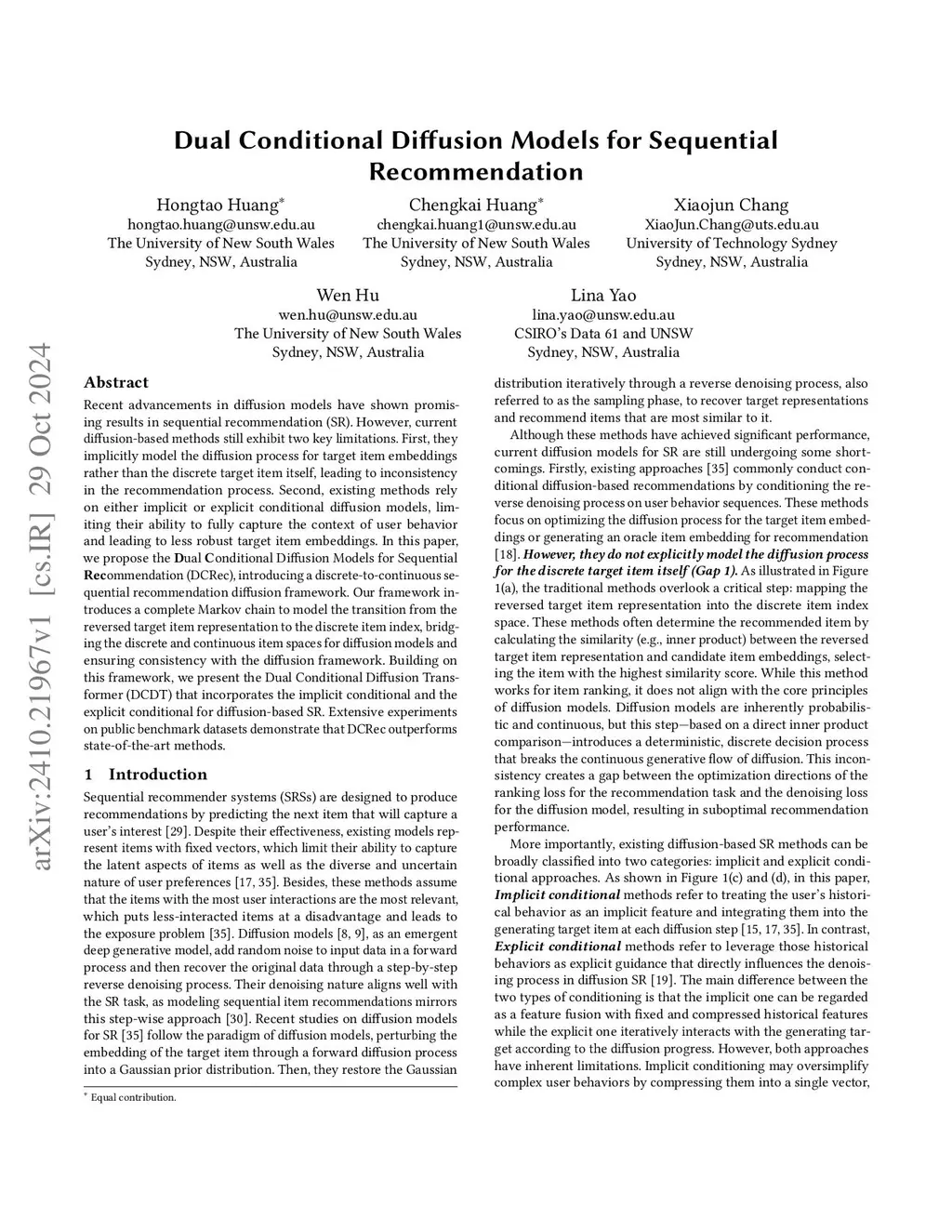 Dual Conditional Diffusion Models for Sequential Recommendation