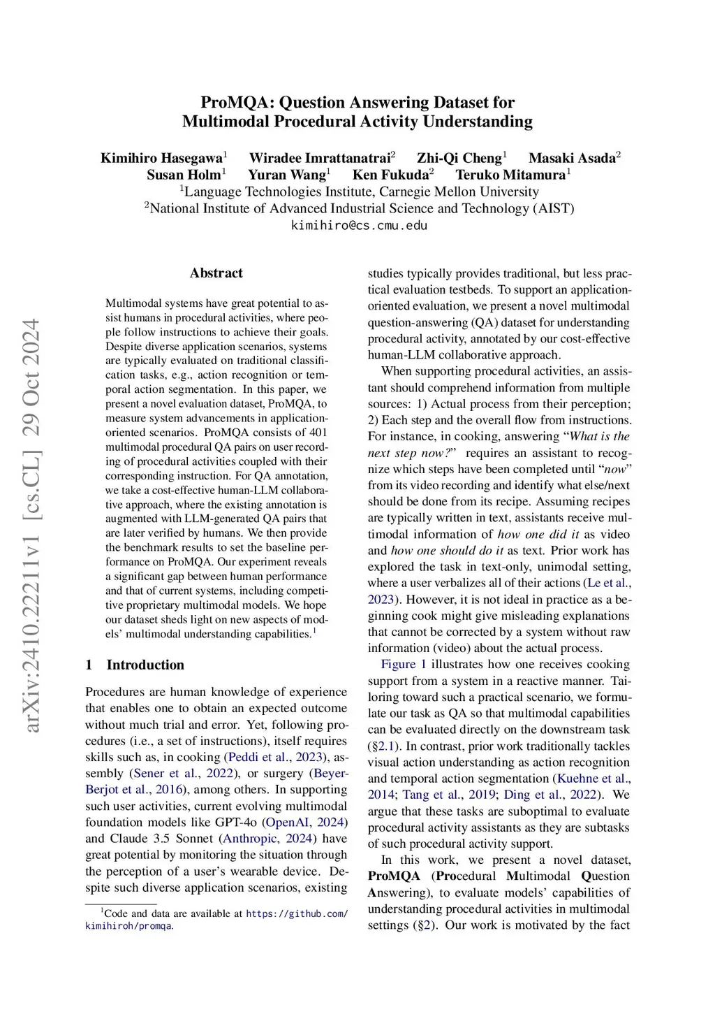 ProMQA: Question Answering Dataset for Multimodal Procedural Activity Understanding