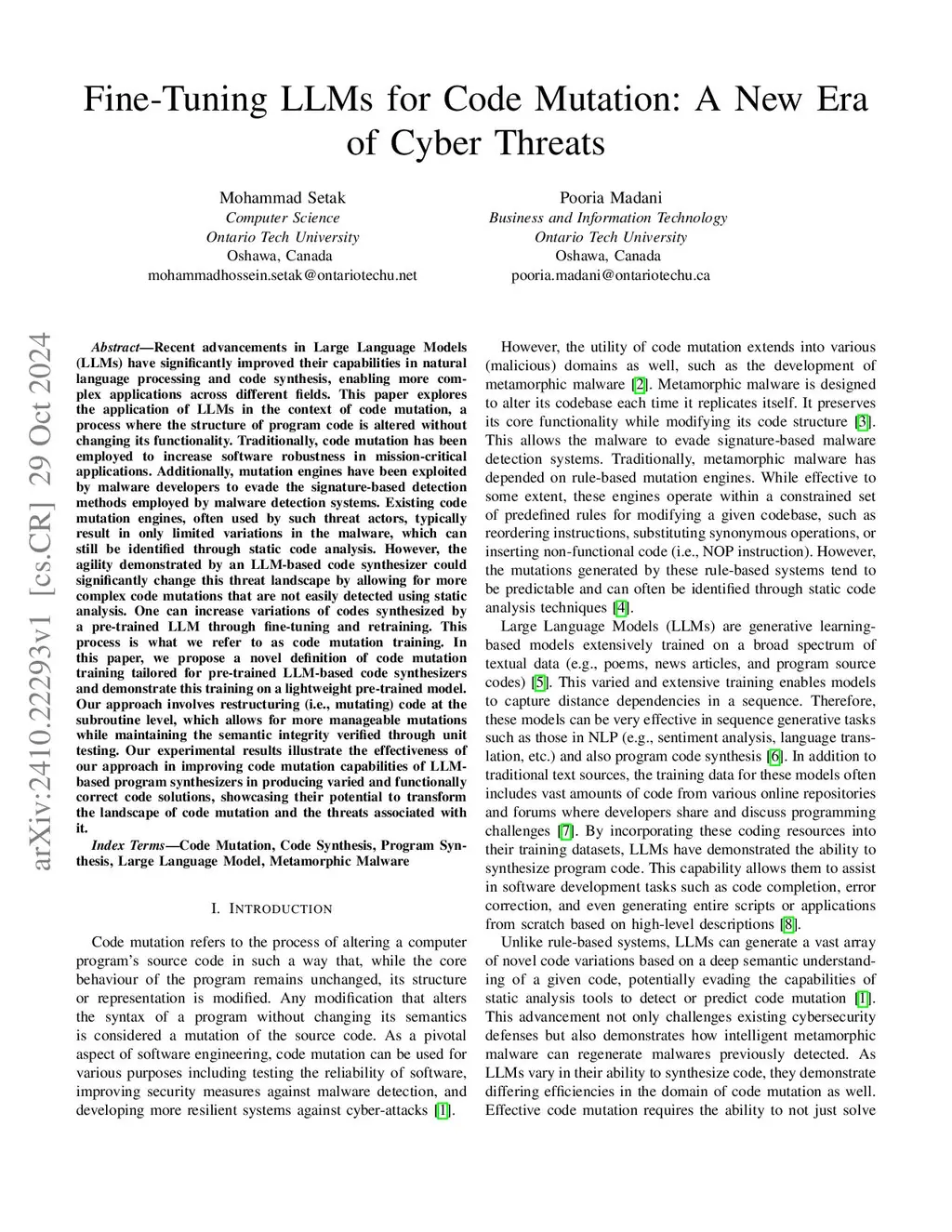 Fine-Tuning LLMs for Code Mutation: A New Era of Cyber Threats