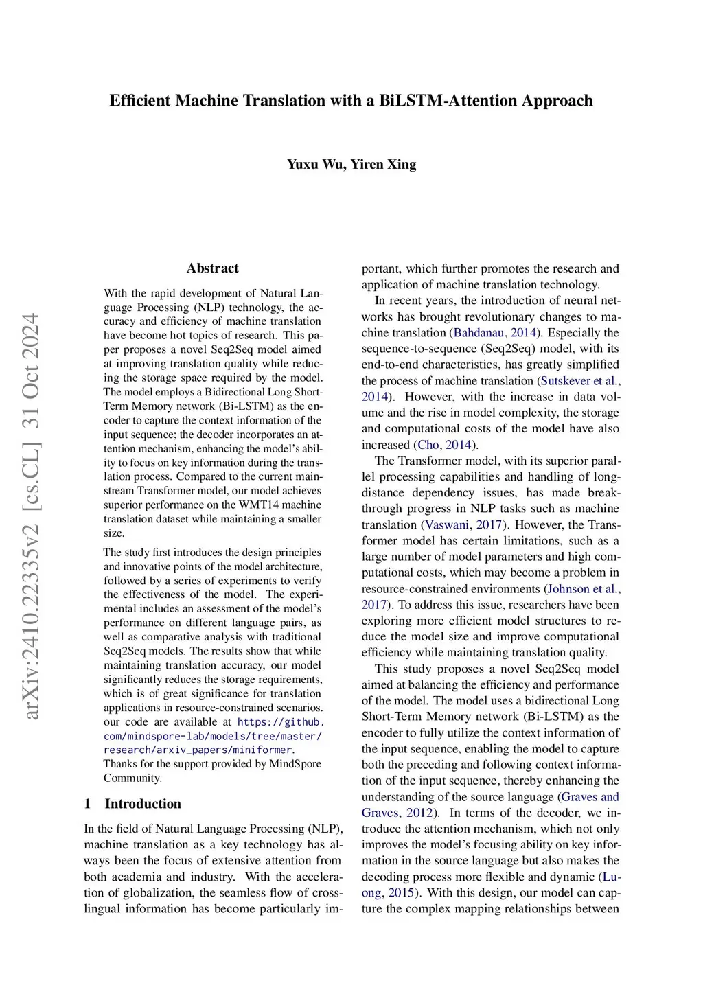 With the rapid development of Natural Language Processing (NLP) technology, the accuracy and efficiency of machine translation have become hot topics of research. This paper proposes a novel Seq2Seq model aimed at improving translation quality while reducing the storage space required by the model. The model employs a Bidirectional Long Short-Term Memory network (Bi-LSTM) as the encoder to capture the context information of the input sequence; the decoder incorporates an attention mechanism, enhancing the model's ability to focus on key information during the translation process. Compared to the current mainstream Transformer model, our model achieves superior performance on the WMT14 machine translation dataset while maintaining a smaller size. The study first introduces the design principles and innovative points of the model architecture, followed by a series of experiments to verify the effectiveness of the model. The experimental includes an assessment of the model's performance on different language pairs, as well as comparative analysis with traditional Seq2Seq models. The results show that while maintaining translation accuracy, our model significantly reduces the storage requirements, which is of great significance for translation applications in resource-constrained scenarios. our code are available at https://github.com/mindspore-lab/models/tree/master/research/arxiv_papers/miniformer. Thanks for the support provided by MindSpore Community.