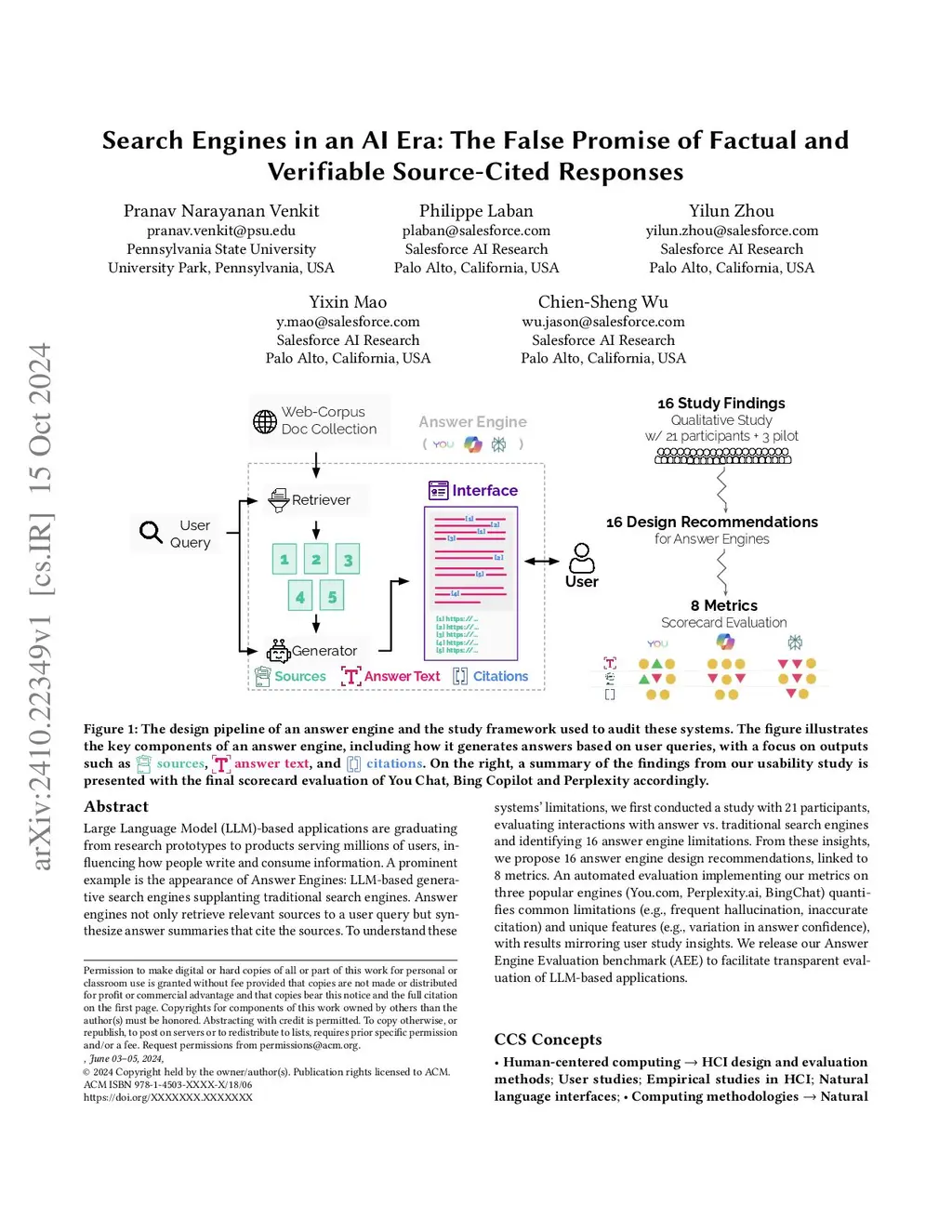 Search Engines in an AI Era: The False Promise of Factual and Verifiable