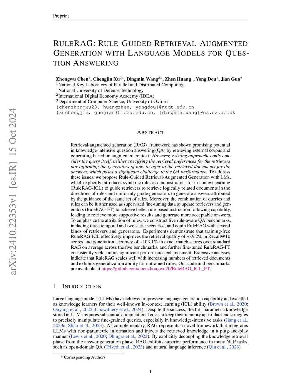 RuleRAG: Rule-Guided Retrieval-Augmented Generation with Language Models for Question Answering