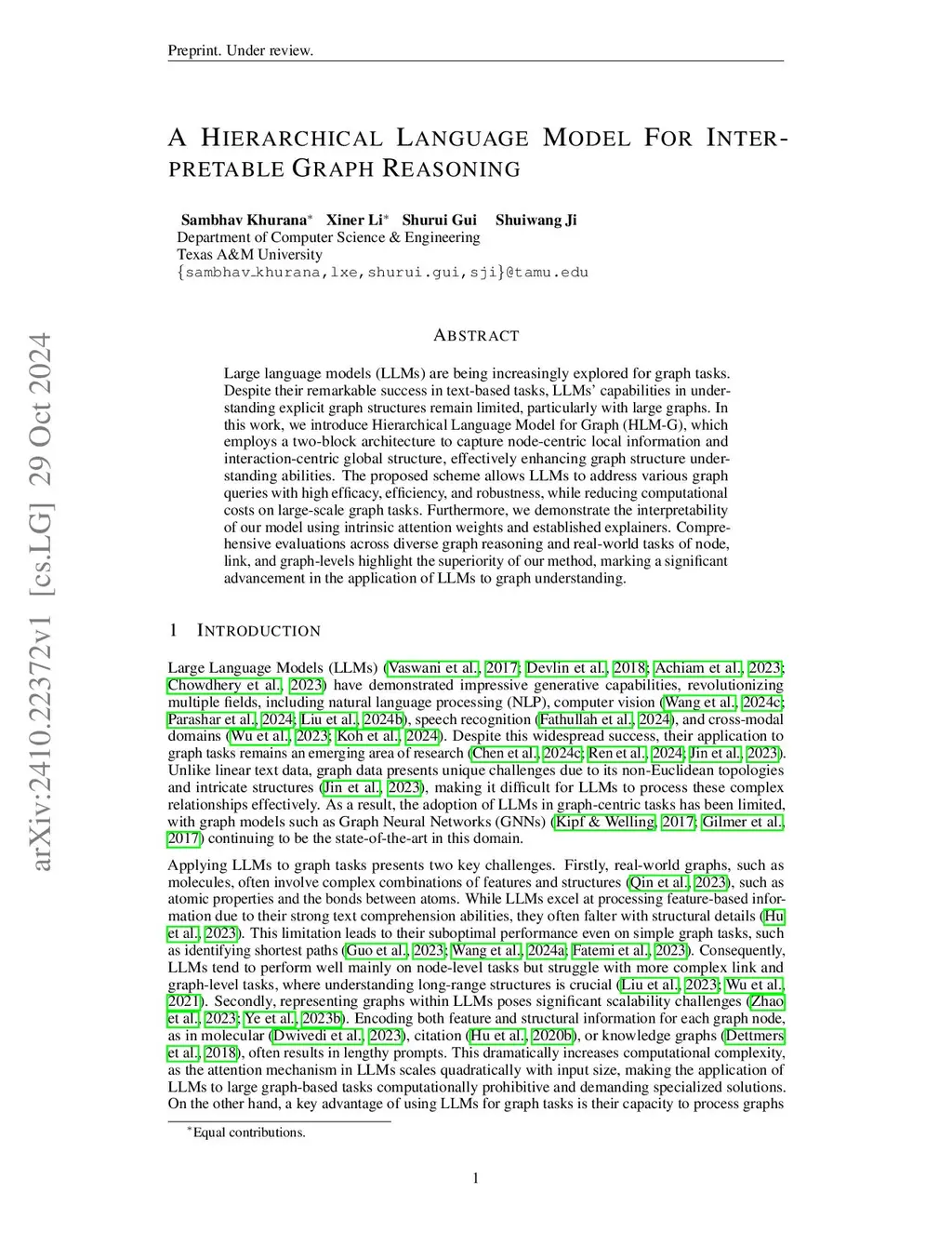 A Hierarchical Language Model For Interpretable Graph Reasoning