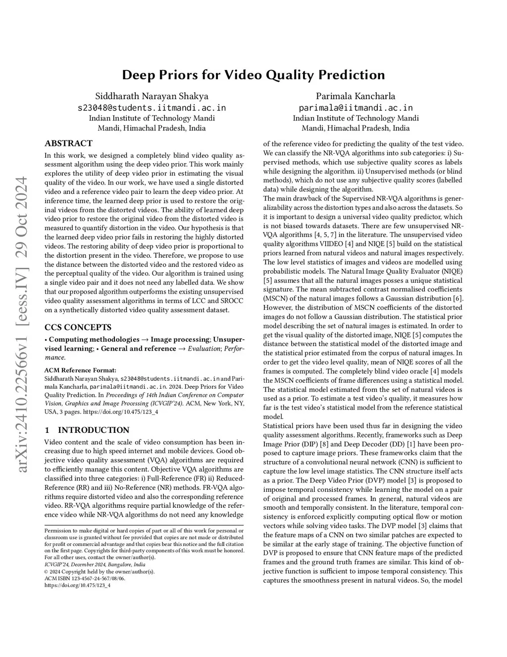 Deep Priors for Video Quality Prediction
