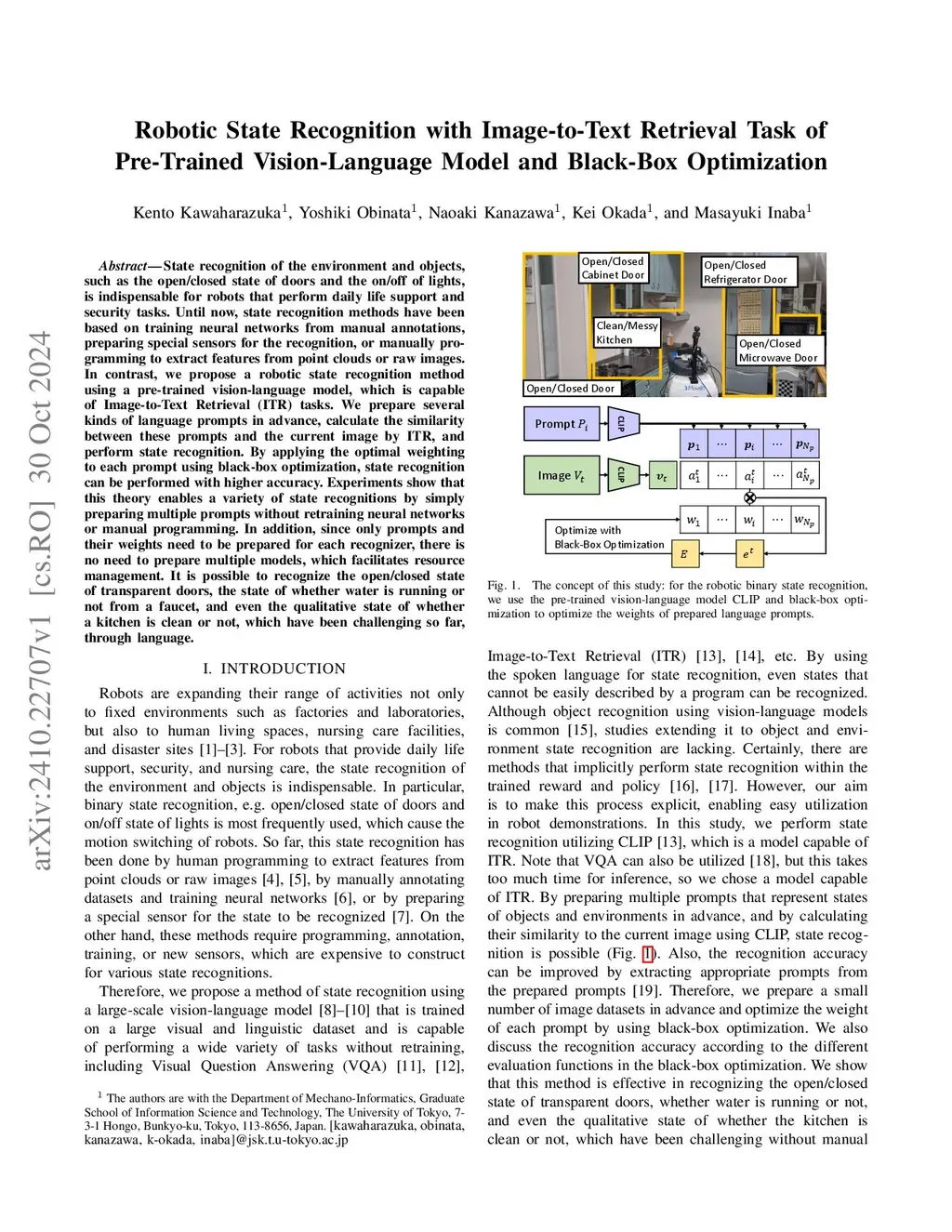 Robotic State Recognition with Image-to-Text Retrieval Task of
