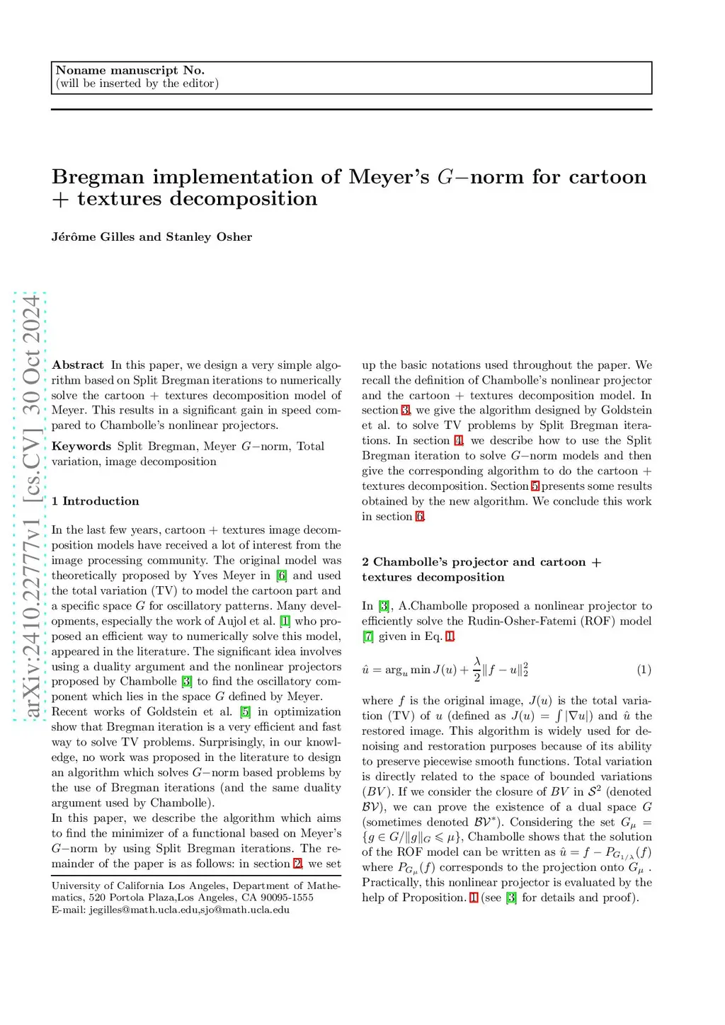 Bregman implementation of Meyer's norm for cartoon + textures