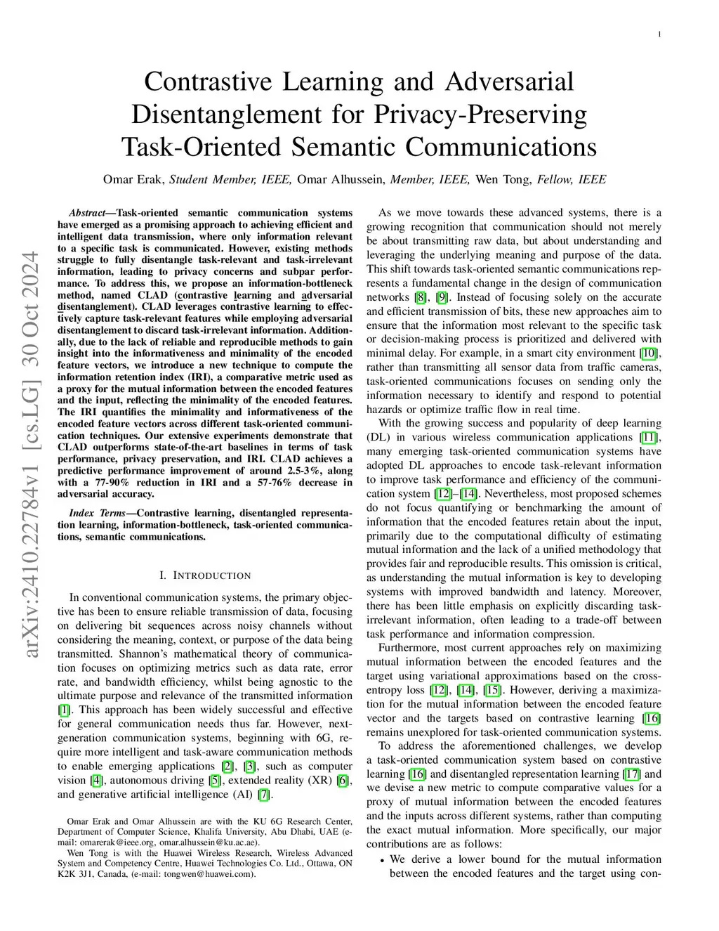 Task-oriented semantic communication systems have emerged as a promising approach to achieving efficient and intelligent data transmission in next-generation networks, where only information relevant to a specific task is communicated. This is particularly important in 6G-enabled Internet of Things (6G-IoT) scenarios, where bandwidth constraints, latency requirements, and data privacy are critical. However, existing methods struggle to fully disentangle task-relevant and task-irrelevant information, leading to privacy concerns and suboptimal performance. To address this, we propose an information-bottleneck inspired method, named CLAD (contrastive learning and adversarial disentanglement). CLAD utilizes contrastive learning to effectively capture task-relevant features while employing adversarial disentanglement to discard task-irrelevant information. Additionally, due to the absence of reliable and reproducible methods to quantify the minimality of encoded feature vectors, we introduce the Information Retention Index (IRI), a comparative metric used as a proxy for the mutual information between the encoded features and the input. The IRI reflects how minimal and informative the representation is, making it highly relevant for privacy-preserving and bandwidth-efficient 6G-IoT systems. Extensive experiments demonstrate that CLAD outperforms state-of-the-art baselines in terms of semantic extraction, task performance, privacy preservation, and IRI, making it a promising building block for responsible, efficient and trustworthy 6G-IoT services.