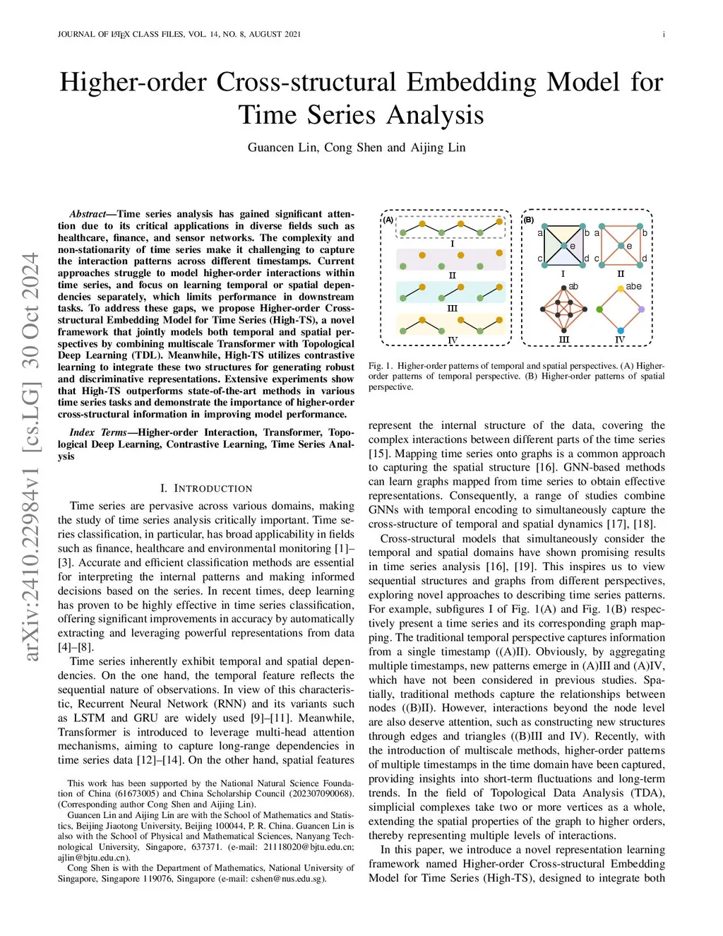 Higher-order Cross-structural Embedding Model for Time Series Analysis