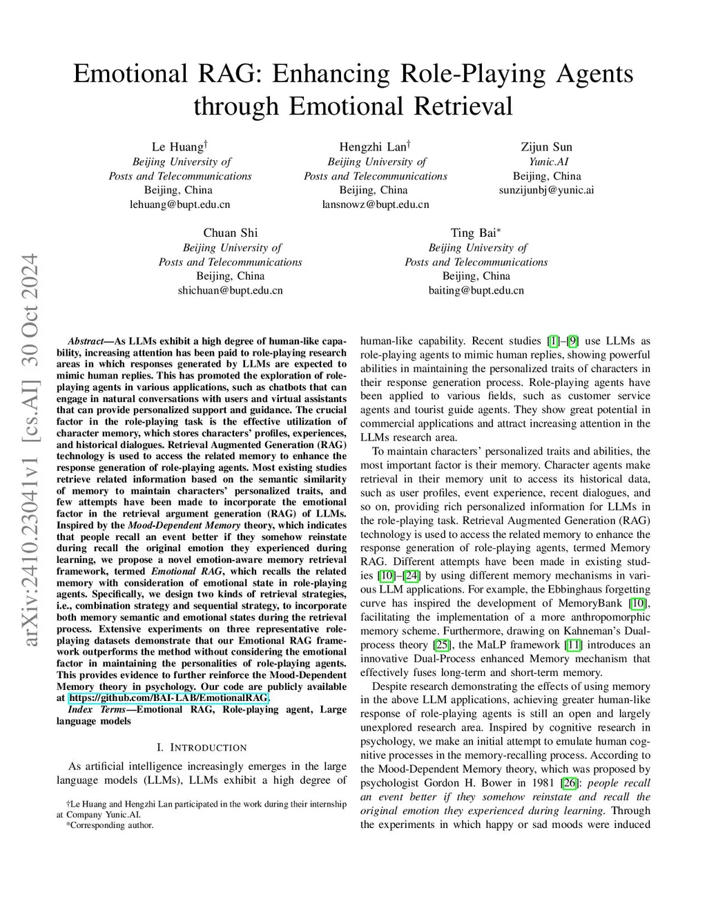 Emotional RAG: Enhancing Role-Playing Agents through Emotional Retrieval
