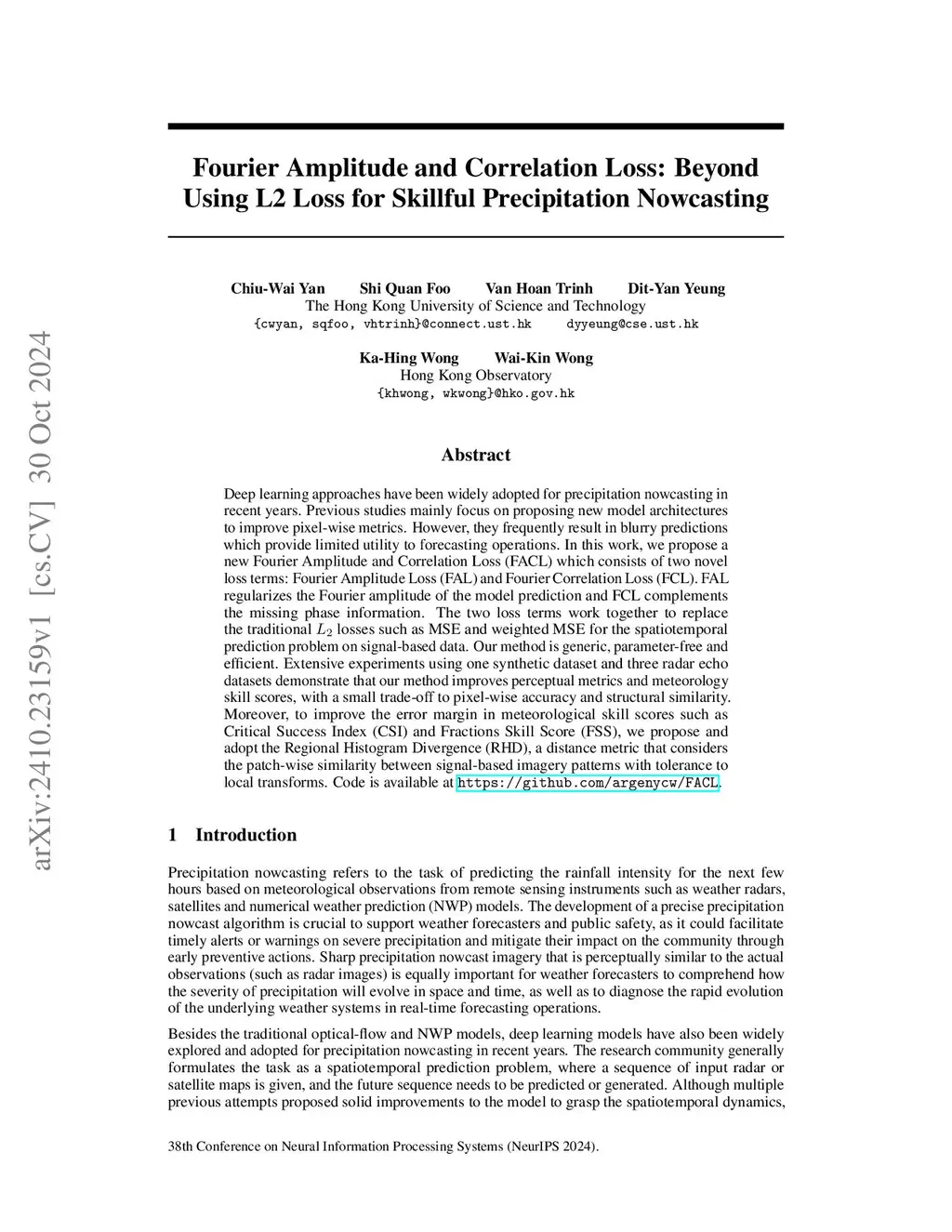 Deep learning approaches have been widely adopted for precipitation nowcasting in recent years. Previous studies mainly focus on proposing new model architectures to improve pixel-wise metrics. However, they frequently result in blurry predictions which provide limited utility to forecasting operations. In this work, we propose a new Fourier Amplitude and Correlation Loss (FACL) which consists of two novel loss terms: Fourier Amplitude Loss (FAL) and Fourier Correlation Loss (FCL). FAL regularizes the Fourier amplitude of the model prediction and FCL complements the missing phase information. The two loss terms work together to replace the traditional losses such as MSE and weighted MSE for the spatiotemporal prediction problem on signal-based data. Our method is generic, parameter-free and efficient. Extensive experiments using one synthetic dataset and three radar echo datasets demonstrate that our method improves perceptual metrics and meteorology skill scores, with a small trade-off to pixel-wise accuracy and structural similarity. Moreover, to improve the error margin in meteorological skill scores such as Critical Success Index (CSI) and Fractions Skill Score (FSS), we propose and adopt the Regional Histogram Divergence (RHD), a distance metric that considers the patch-wise similarity between signal-based imagery patterns with tolerance to local transforms. Code is available at https://github.com/argenycw/FACL