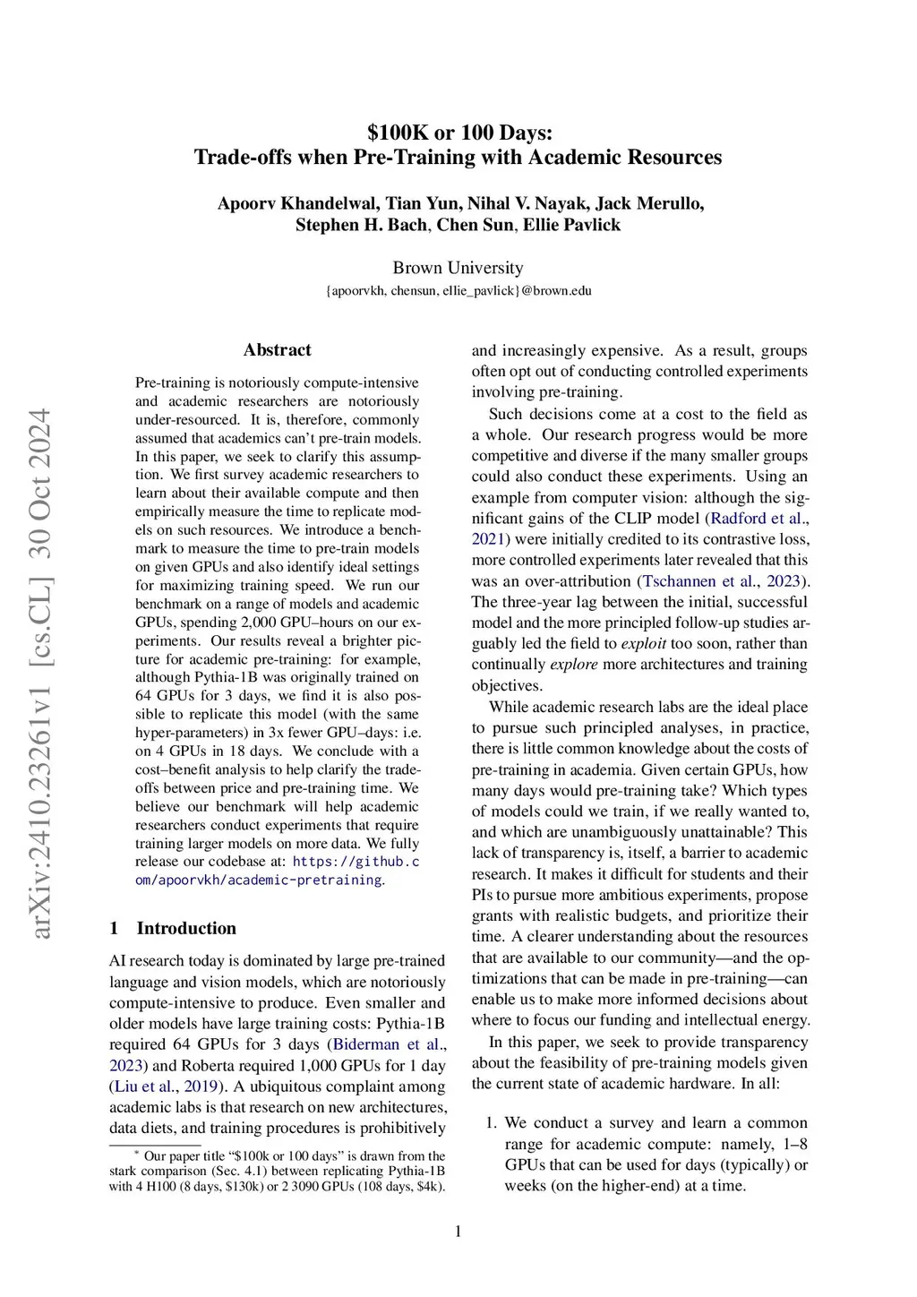$100K or 100 Days: Trade-offs when Pre-Training with Academic Resources