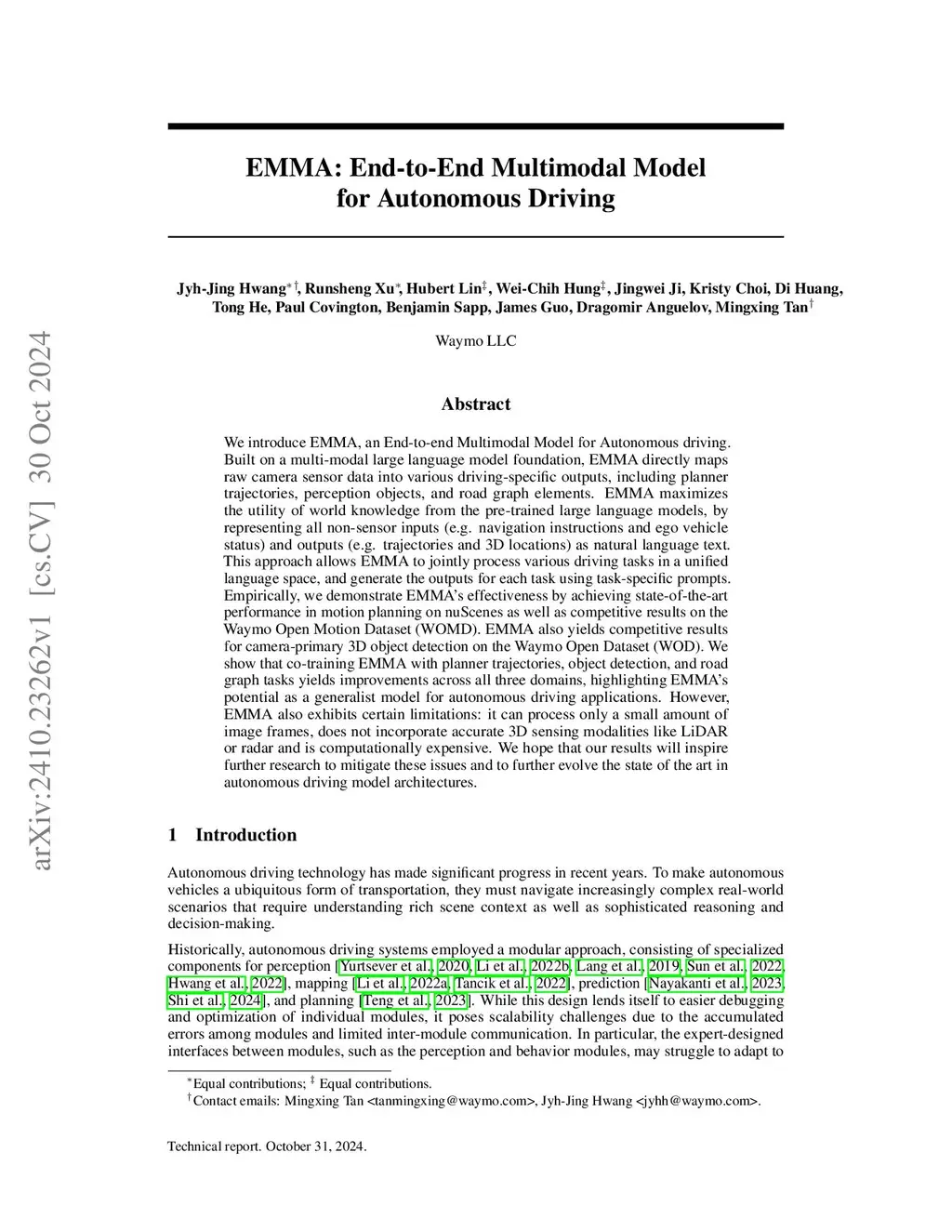 EMMA: End-to-End Multimodal Model for Autonomous Driving