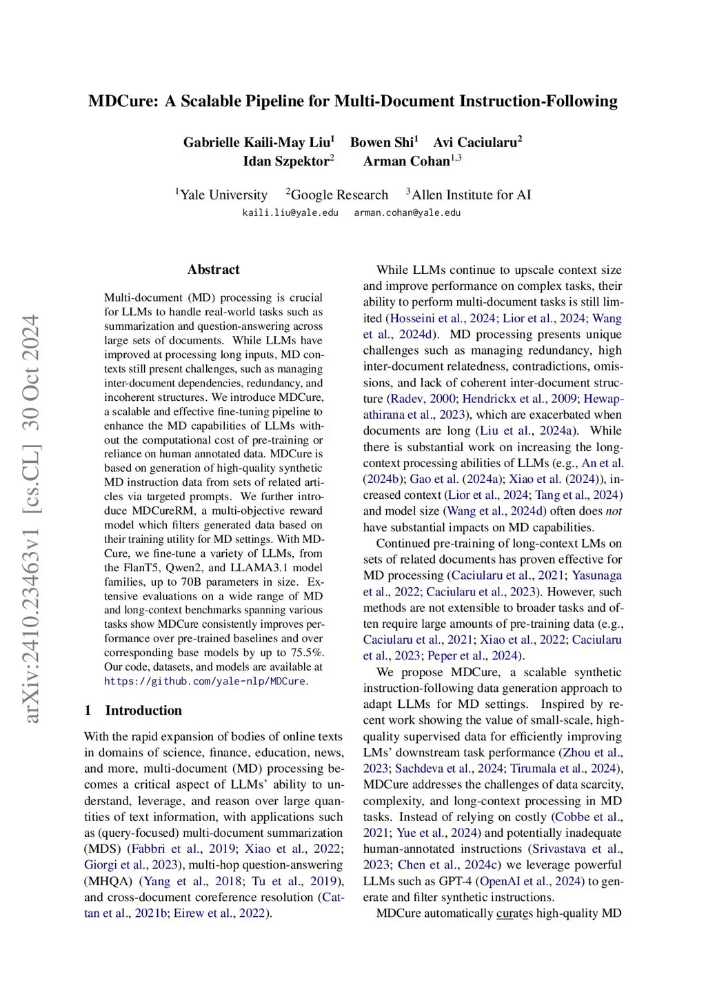 MDCure: A Scalable Pipeline for Multi-Document Instruction-Following