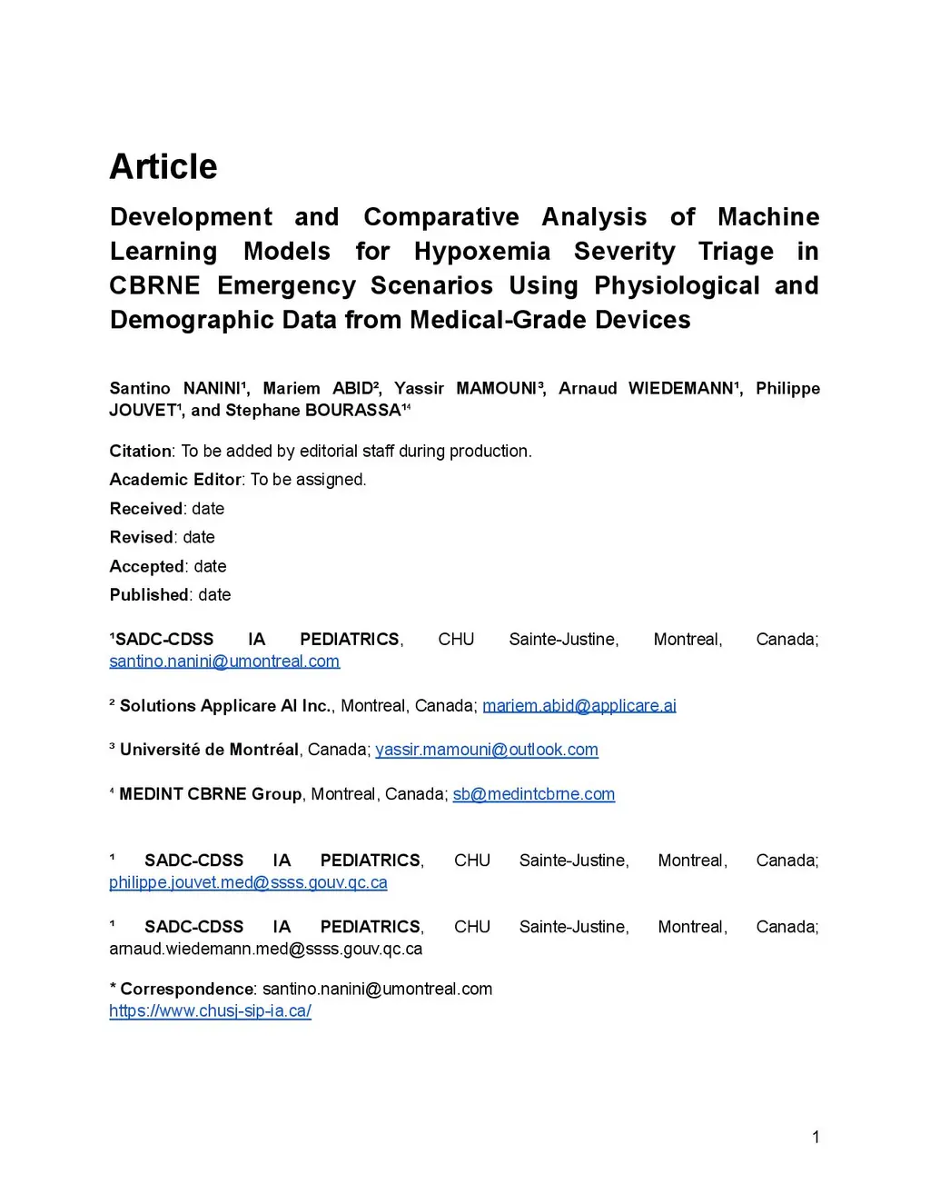 Hypoxemia Severity Triage in CBRNE Emergency Scenarios Using Physiological