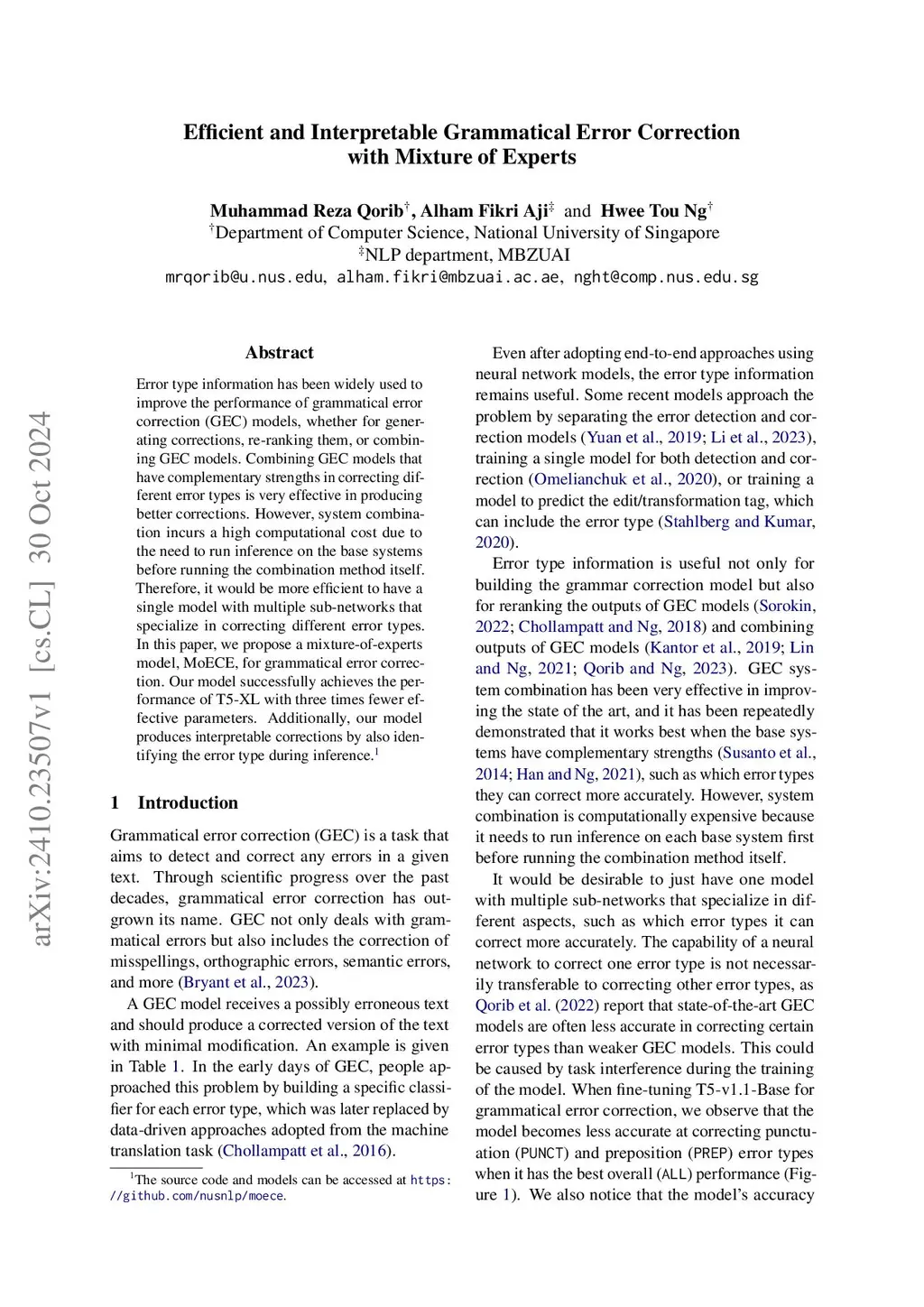 Efficient and Interpretable Grammatical Error Correction with Mixture of