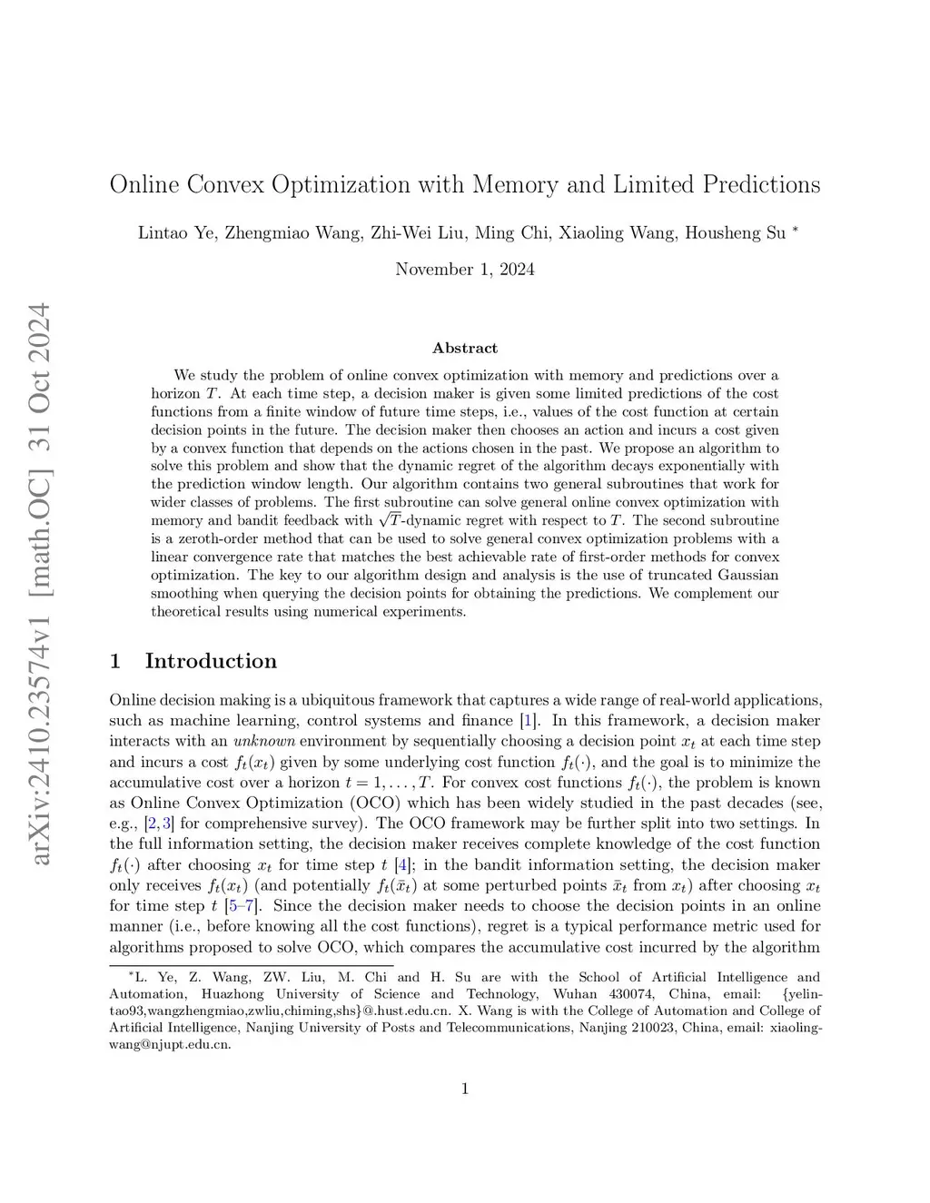This paper addresses an online convex optimization problem where the cost function at each step depends on a history of past decisions (i.e., memory), and the decision maker has access to limited predictions of future cost values within a finite window. The goal is to design an algorithm that minimizes the dynamic regret against the optimal sequence of decisions in hindsight. To this end, we propose a novel predictive algorithm and establish strong theoretical guarantees for its performance. We show that the algorithm's dynamic regret decays exponentially with the length of the prediction window. Our algorithm comprises two general subroutines of independent interest. The first subroutine solves online convex optimization with memory and bandit feedback, achieving a -dynamic regret, where measures the variation of the optimal decision sequence. The second is a zeroth-order method that attains a linear convergence rate for general convex optimization, matching the best achievable rate of first-order methods. The key to our algorithm is a novel truncated Gaussian smoothing technique when querying the decision points to obtain the predictions. We validate our theoretical results with numerical experiments.