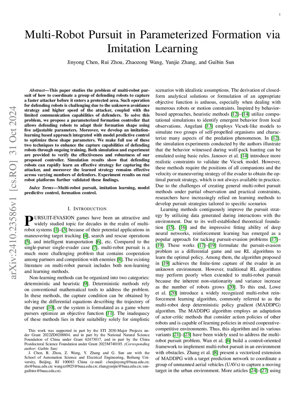 This paper studies the problem of multi-robot pursuit of how to coordinate a group of defending robots to capture a faster attacker before it enters a protected area. Such operation for defending robots is challenging due to the unknown avoidance strategy and higher speed of the attacker, coupled with the limited communication capabilities of defenders. To solve this problem, we propose a parameterized formation controller that allows defending robots to adapt their formation shape using five adjustable parameters. Moreover, we develop an imitation-learning based approach integrated with model predictive control to optimize these shape parameters. We make full use of these two techniques to enhance the capture capabilities of defending robots through ongoing training. Both simulation and experiment are provided to verify the effectiveness and robustness of our proposed controller. Simulation results show that defending robots can rapidly learn an effective strategy for capturing the attacker, and moreover the learned strategy remains effective across varying numbers of defenders. Experiment results on real robot platforms further validated these findings.