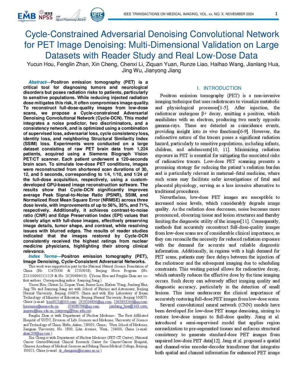 Cycle-Constrained Adversarial Denoising Convolutional Network for PET