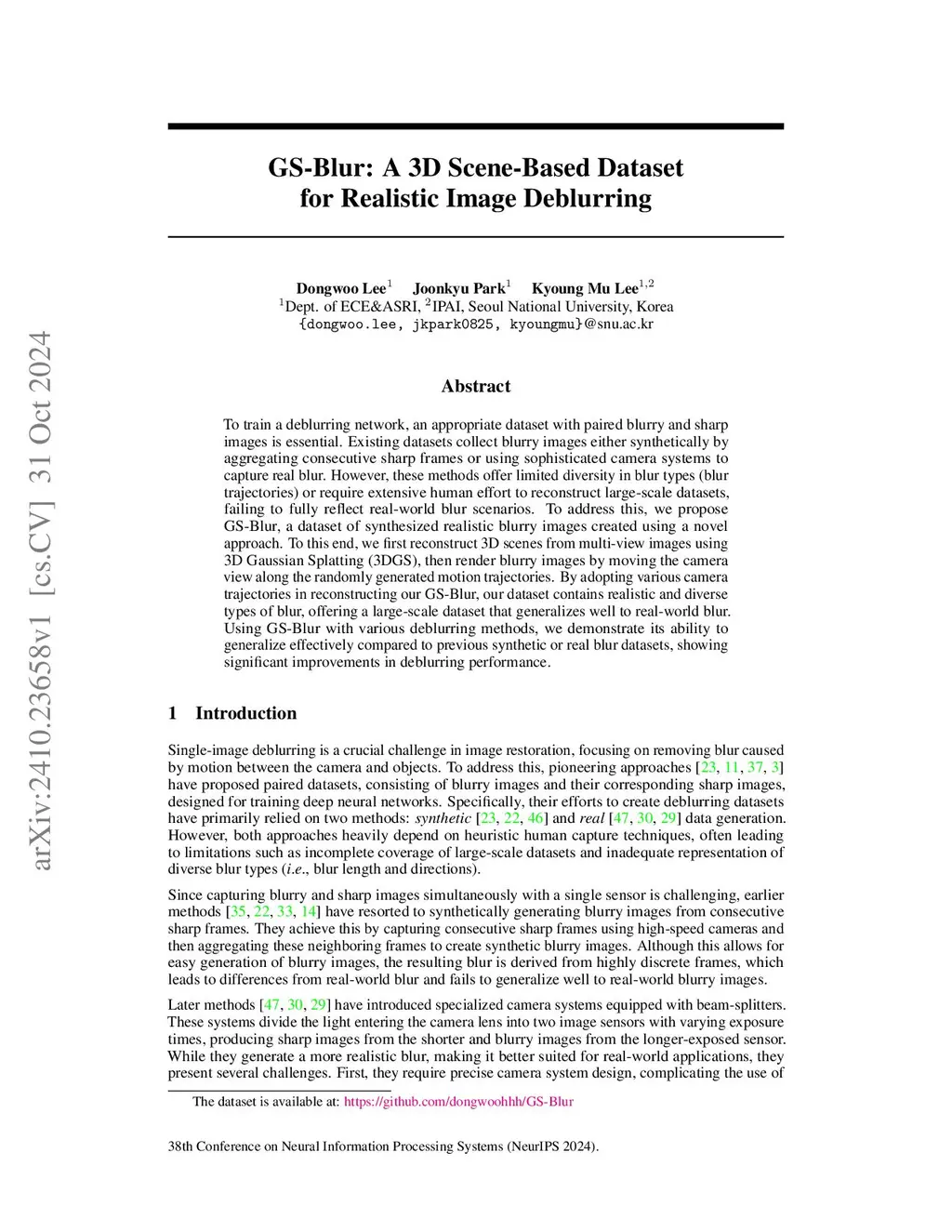 GS-Blur: A 3D Scene-Based Dataset for Realistic Image Deblurring
