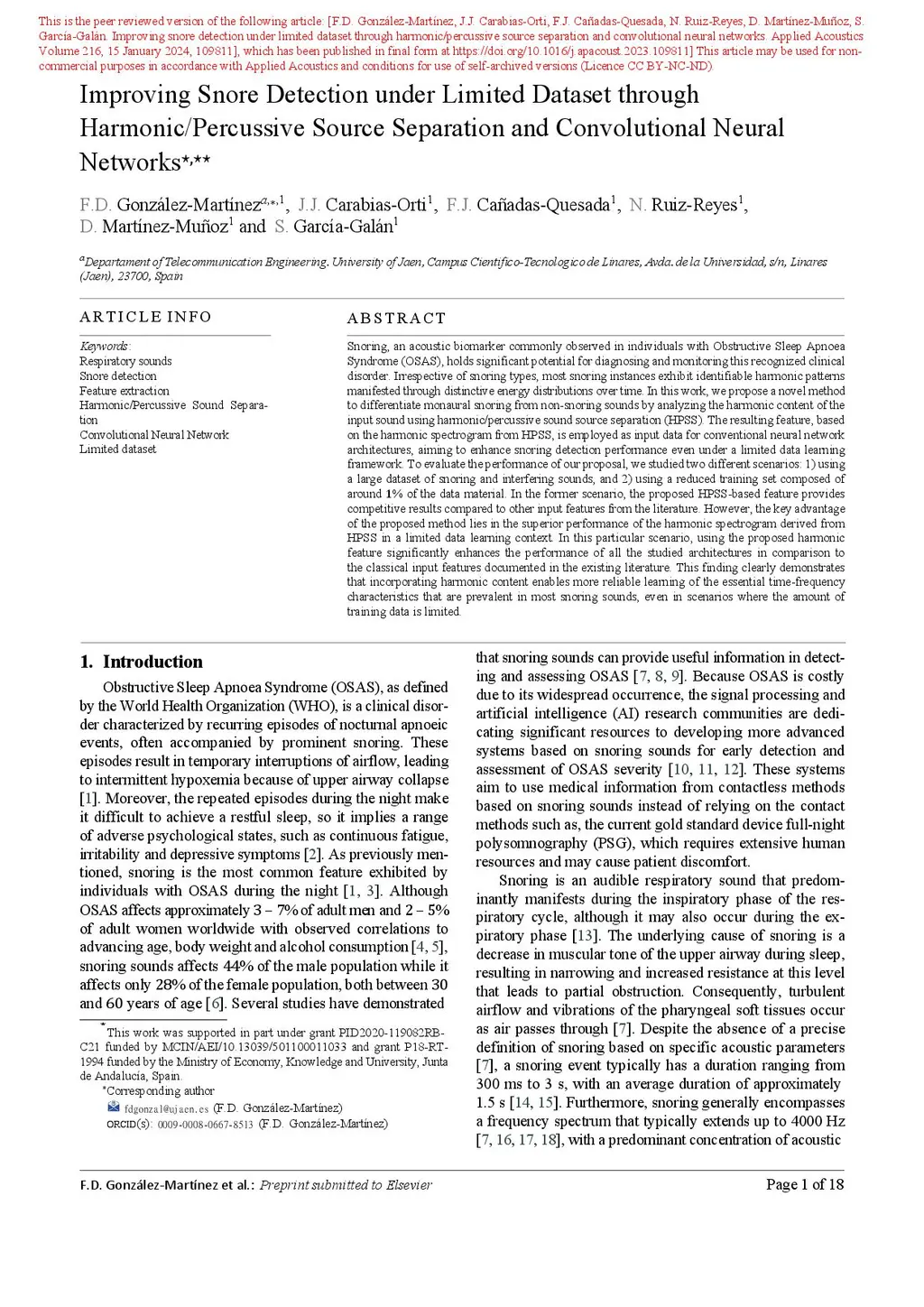 Improving snore detection under limited dataset through