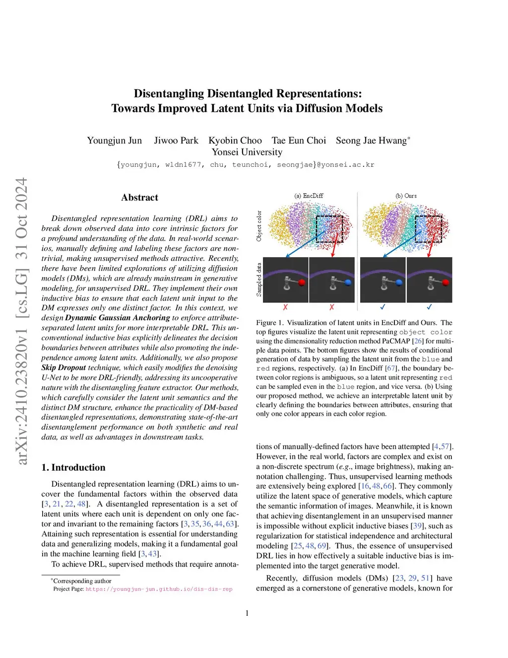 Disentangled representation learning (DRL) aims to break down observed data into core intrinsic factors for a profound understanding of the data. In real-world scenarios, manually defining and labeling these factors are non-trivial, making unsupervised methods attractive. Recently, there have been limited explorations of utilizing diffusion models (DMs), which are already mainstream in generative modeling, for unsupervised DRL. They implement their own inductive bias to ensure that each latent unit input to the DM expresses only one distinct factor. In this context, we design Dynamic Gaussian Anchoring to enforce attribute-separated latent units for more interpretable DRL. This unconventional inductive bias explicitly delineates the decision boundaries between attributes while also promoting the independence among latent units. Additionally, we also propose Skip Dropout technique, which easily modifies the denoising U-Net to be more DRL-friendly, addressing its uncooperative nature with the disentangling feature extractor. Our methods, which carefully consider the latent unit semantics and the distinct DM structure, enhance the practicality of DM-based disentangled representations, demonstrating state-of-the-art disentanglement performance on both synthetic and real data, as well as advantages in downstream tasks.