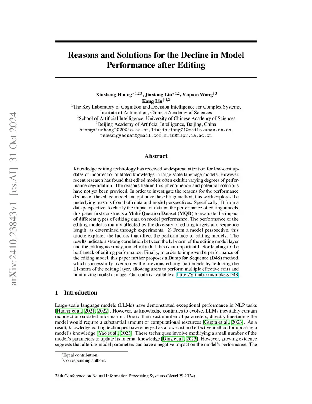 Knowledge editing technology has received widespread attention for low-cost updates of incorrect or outdated knowledge in large-scale language models. However, recent research has found that edited models often exhibit varying degrees of performance degradation. The reasons behind this phenomenon and potential solutions have not yet been provided. In order to investigate the reasons for the performance decline of the edited model and optimize the editing method, this work explores the underlying reasons from both data and model perspectives. Specifically, 1) from a data perspective, to clarify the impact of data on the performance of editing models, this paper first constructs a Multi-Question Dataset (MQD) to evaluate the impact of different types of editing data on model performance. The performance of the editing model is mainly affected by the diversity of editing targets and sequence length, as determined through experiments. 2) From a model perspective, this article explores the factors that affect the performance of editing models. The results indicate a strong correlation between the L1-norm of the editing model layer and the editing accuracy, and clarify that this is an important factor leading to the bottleneck of editing performance. Finally, in order to improve the performance of the editing model, this paper further proposes a Dump for Sequence (D4S) method, which successfully overcomes the previous editing bottleneck by reducing the L1-norm of the editing layer, allowing users to perform multiple effective edits and minimizing model damage. Our code is available at https://github.com/nlpkeg/D4S.