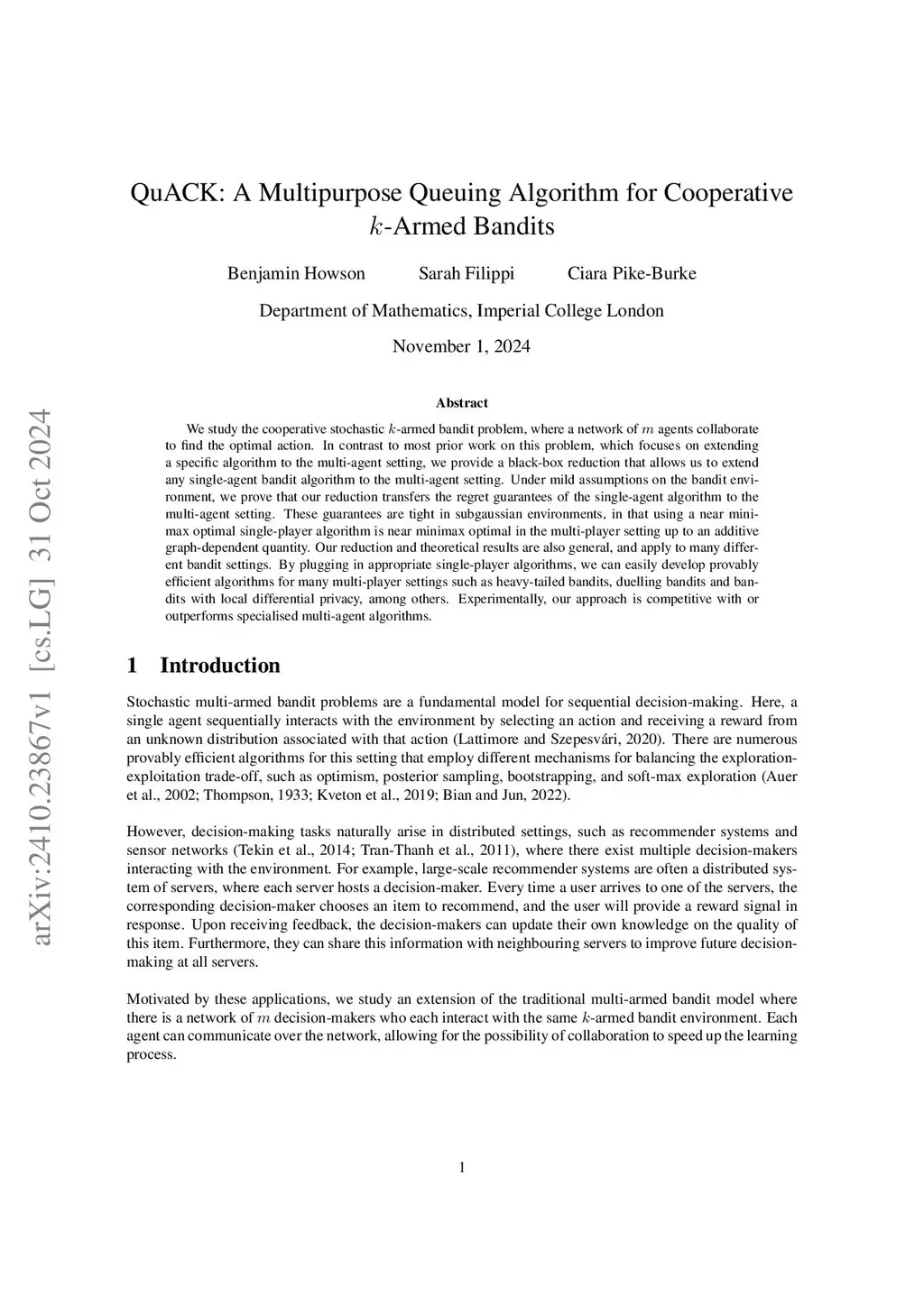 QuACK: A Multipurpose Queuing Algorithm for Cooperative -Armed