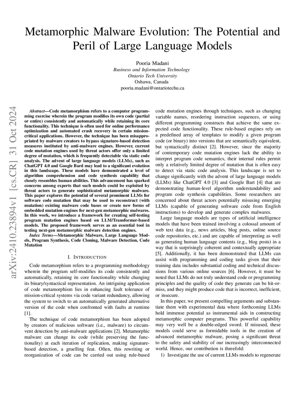 Metamorphic Malware Evolution: The Potential and Peril of Large Language