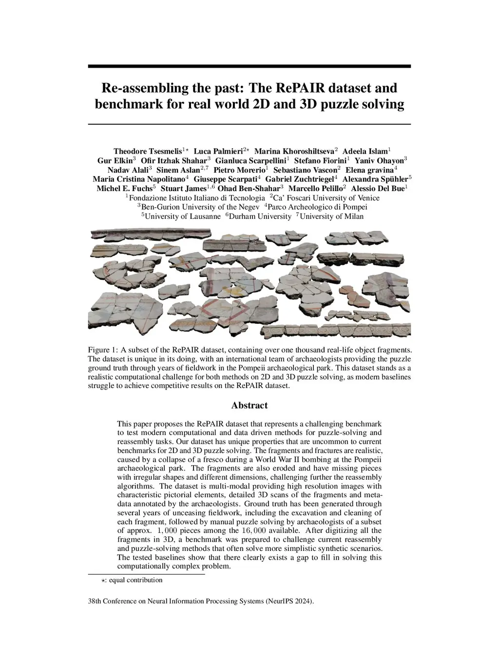 Re-assembling the past: The RePAIR dataset and benchmark for real world