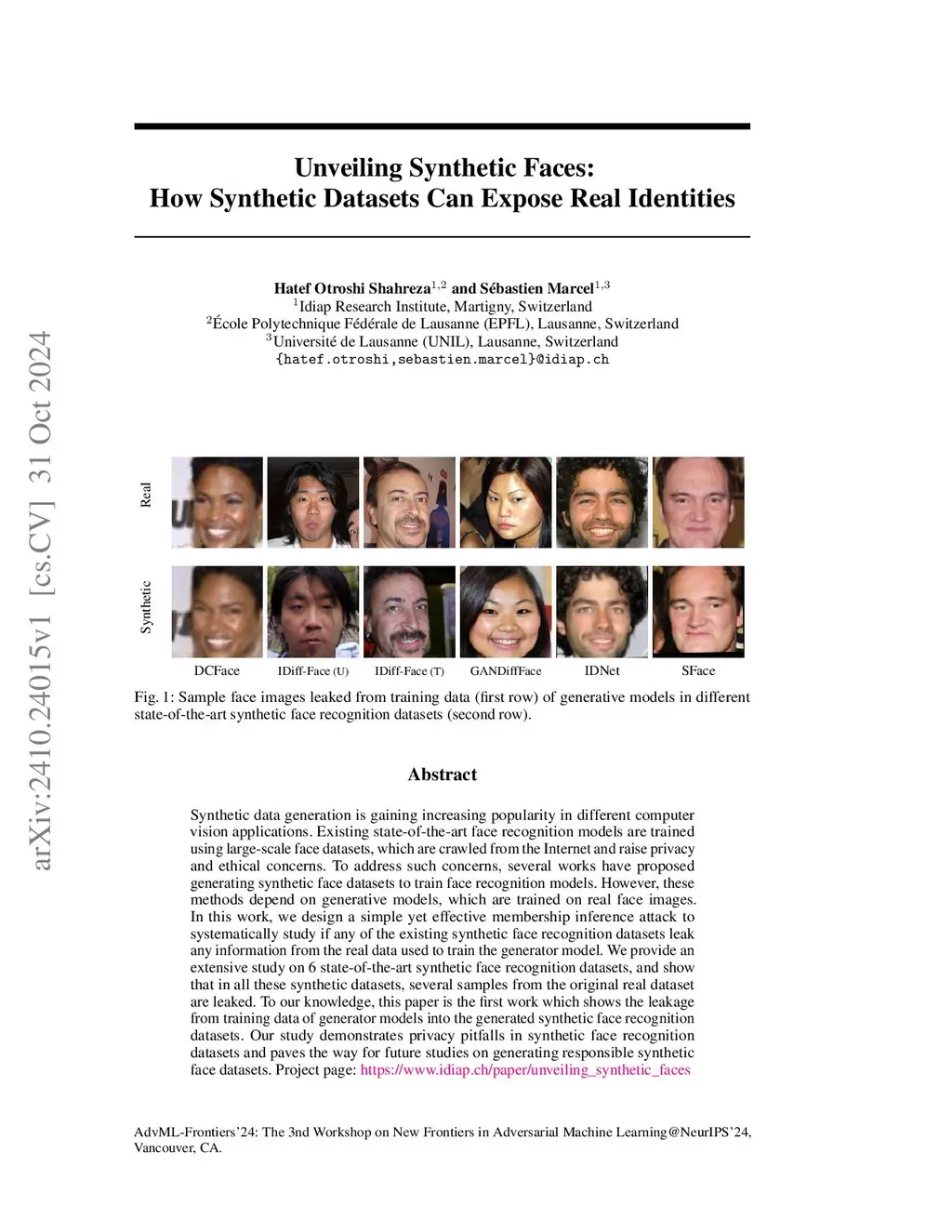 Unveiling Synthetic Faces: How Synthetic Datasets Can Expose Real