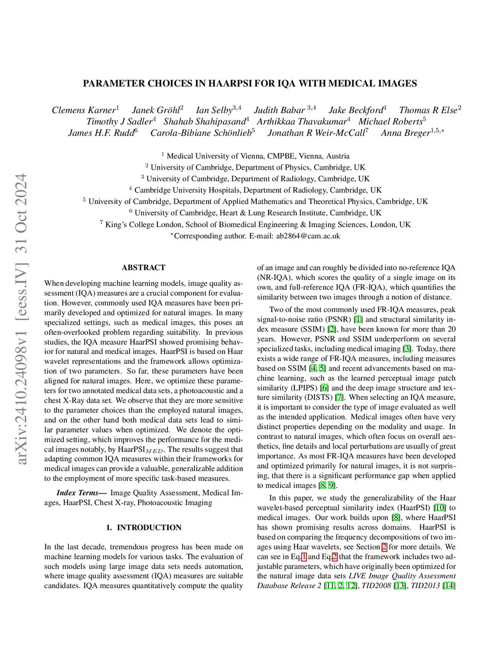 Parameter choices in HaarPSI for IQA with medical images