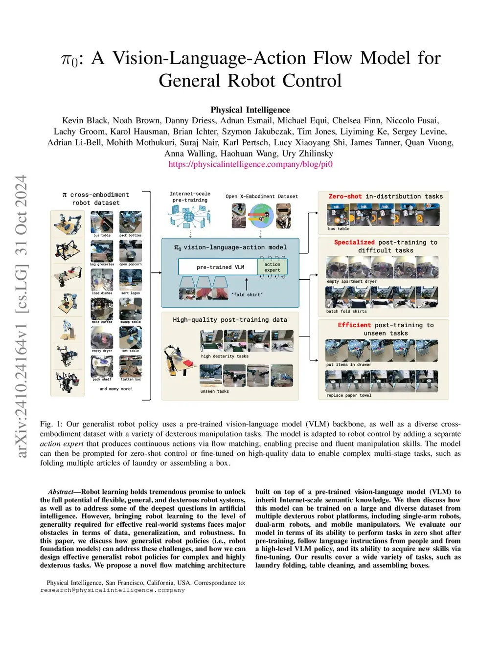 : A Vision-Language-Action Flow Model for General Robot Control