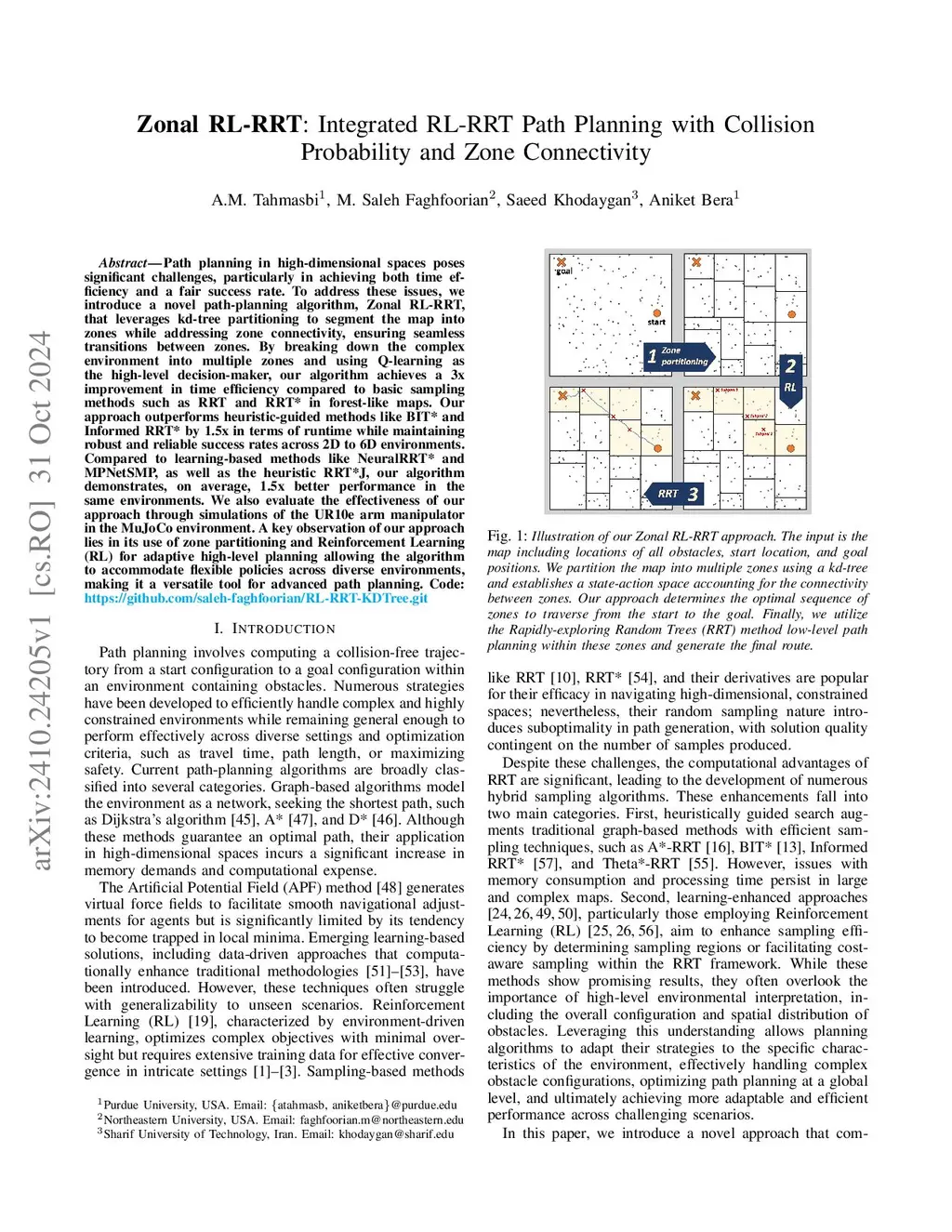 Path planning in high-dimensional spaces poses significant challenges, particularly in achieving both time efficiency and a fair success rate. To address these issues, we introduce a novel path-planning algorithm, Zonal RL-RRT, that leverages kd-tree partitioning to segment the map into zones while addressing zone connectivity, ensuring seamless transitions between zones. By breaking down the complex environment into multiple zones and using Q-learning as the high-level decision-maker, our algorithm achieves a 3x improvement in time efficiency compared to basic sampling methods such as RRT and RRT* in forest-like maps. Our approach outperforms heuristic-guided methods like BIT* and Informed RRT* by 1.5x in terms of runtime while maintaining robust and reliable success rates across 2D to 6D environments. Compared to learning-based methods like NeuralRRT* and MPNetSMP, as well as the heuristic RRT*J, our algorithm demonstrates, on average, 1.5x better performance in the same environments. We also evaluate the effectiveness of our approach through simulations of the UR10e arm manipulator in the MuJoCo environment. A key observation of our approach lies in its use of zone partitioning and Reinforcement Learning (RL) for adaptive high-level planning allowing the algorithm to accommodate flexible policies across diverse environments, making it a versatile tool for advanced path planning.