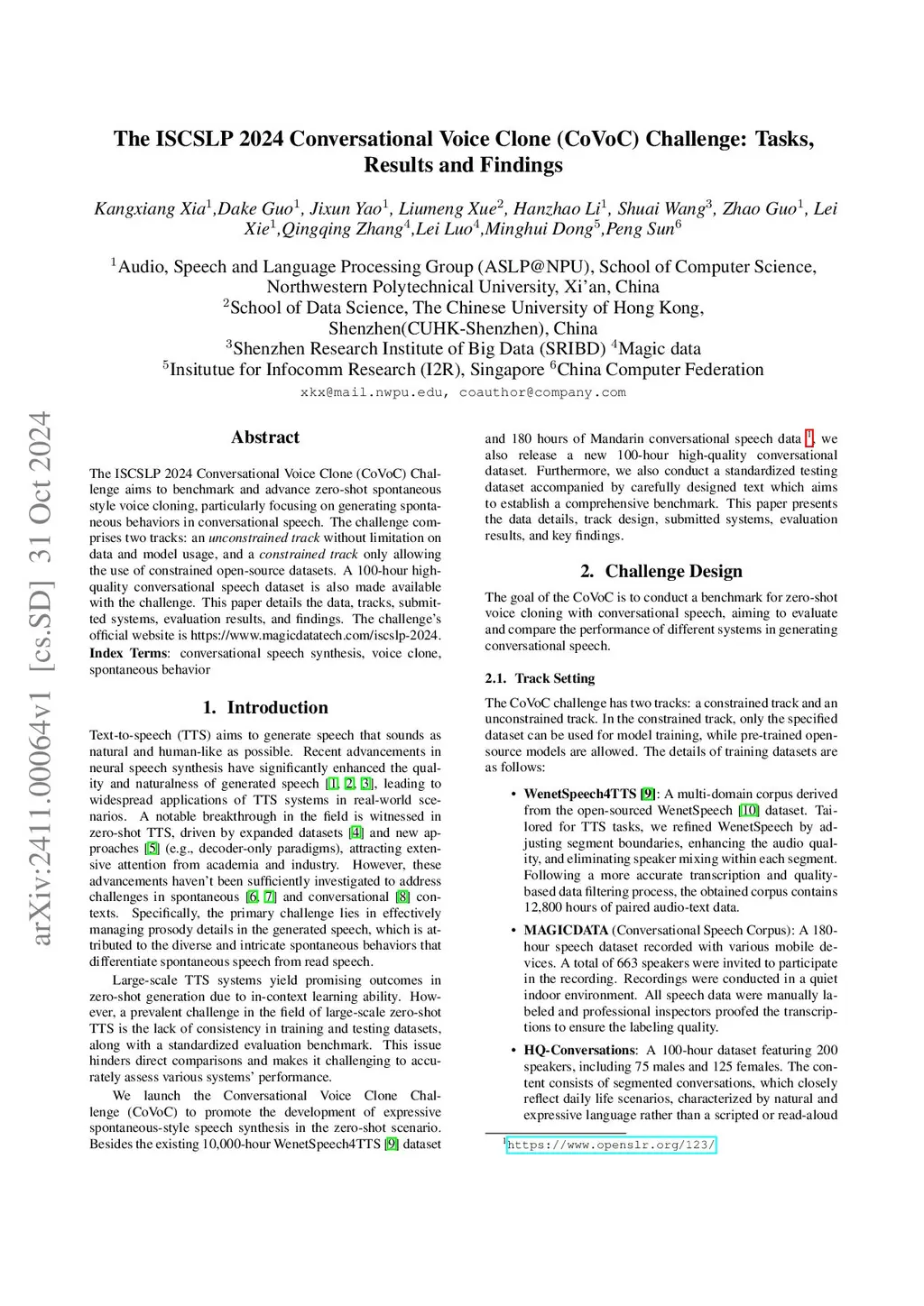 International Symposium on Chinese Spoken Language Processing (ISCSLP), 2024