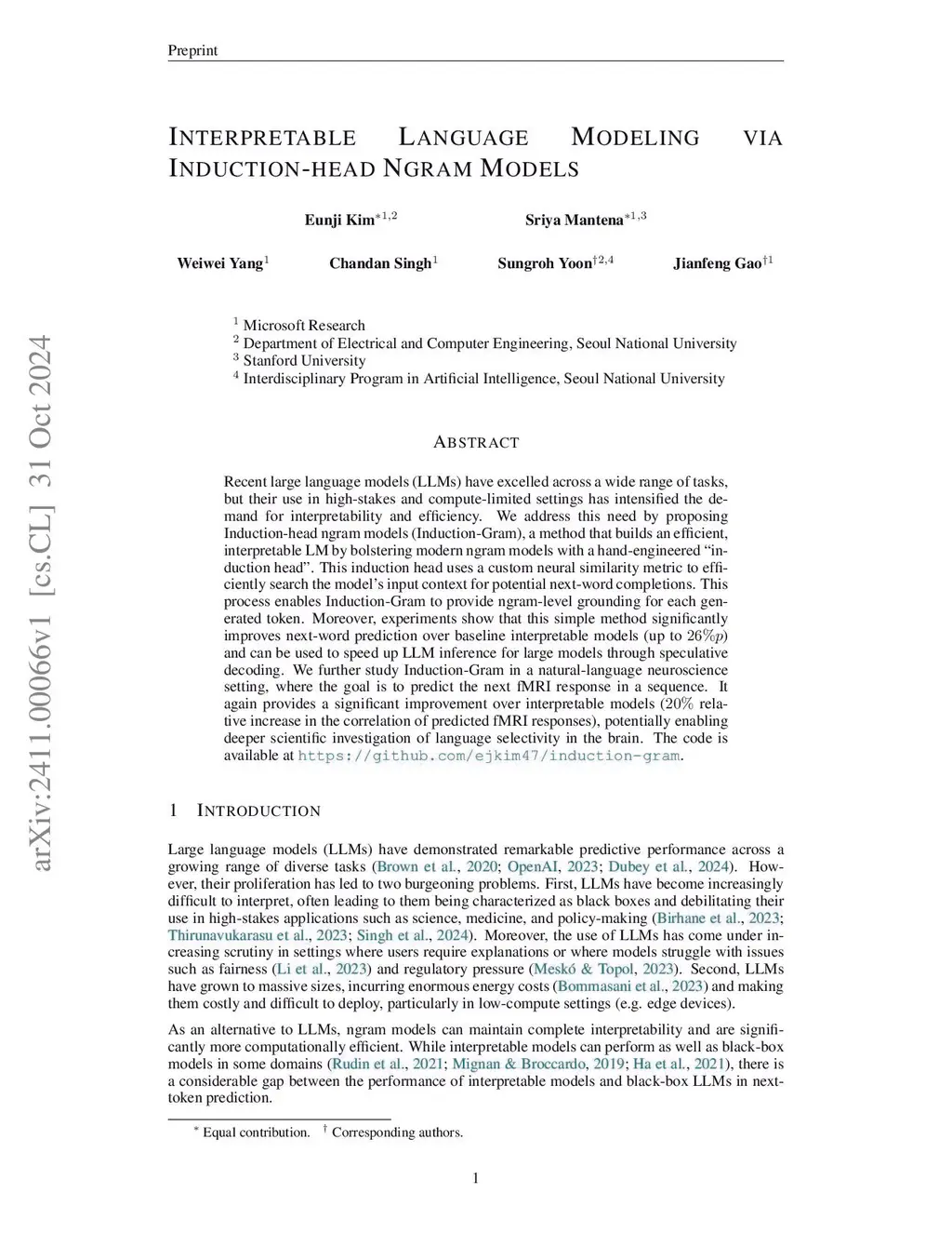 While large transformer models excel in predictive performance, their lack of interpretability restricts their usefulness in high-stakes domains. To remedy this, we propose the Generalized Induction-Head Model (GIM), an interpretable model for next-token prediction inspired by the observation of "induction heads" in LLMs. GIM is a retrieval-based module that identifies similar sequences in the input context by combining exact n-gram matching and fuzzy matching based on a neural similarity metric. We evaluate GIM in two settings: language modeling and fMRI response prediction. In language modeling, GIM improves next-token prediction by up to 25%p over interpretable baselines, significantly narrowing the gap with black-box LLMs. In an fMRI setting, GIM improves neural response prediction by 20% and offers insights into the language selectivity of the brain. GIM represents a significant step toward uniting interpretability and performance across domains. The code is available atthis https URL.