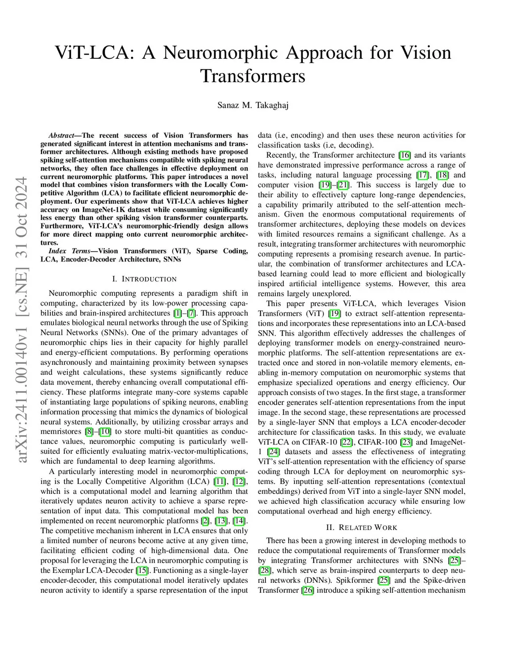 ViT-LCA: A Neuromorphic Approach for Vision Transformers