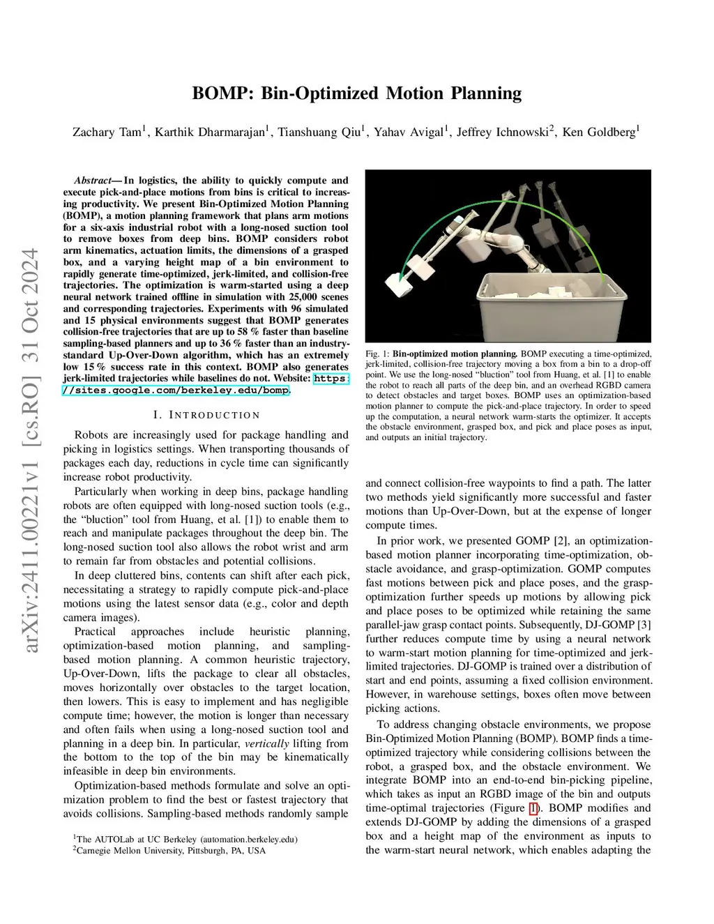 BOMP: Bin-Optimized Motion Planning