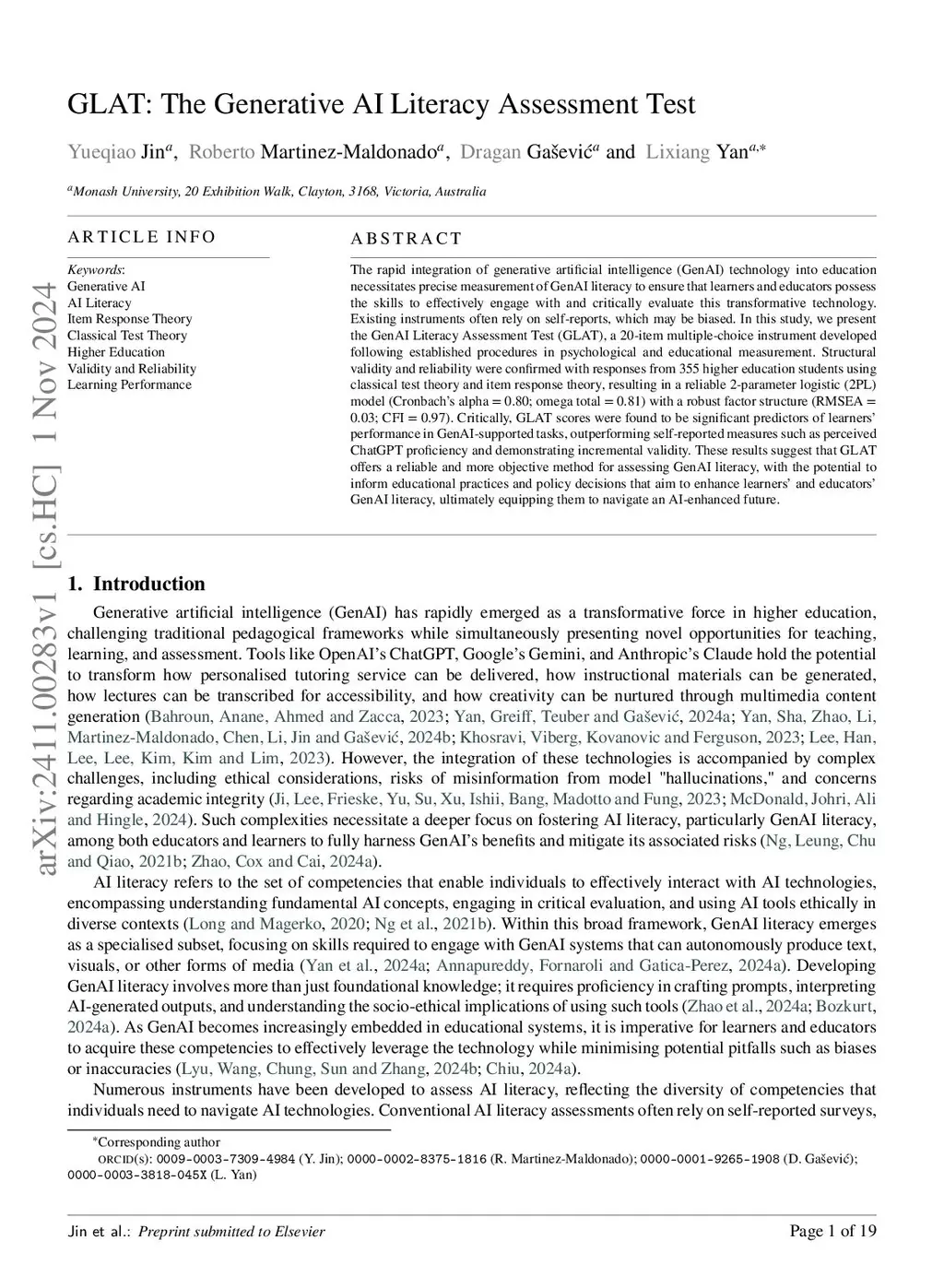 GLAT: The Generative AI Literacy Assessment Test