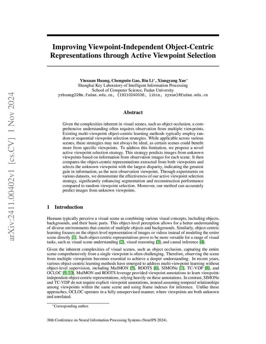 Active Viewpoint Selection