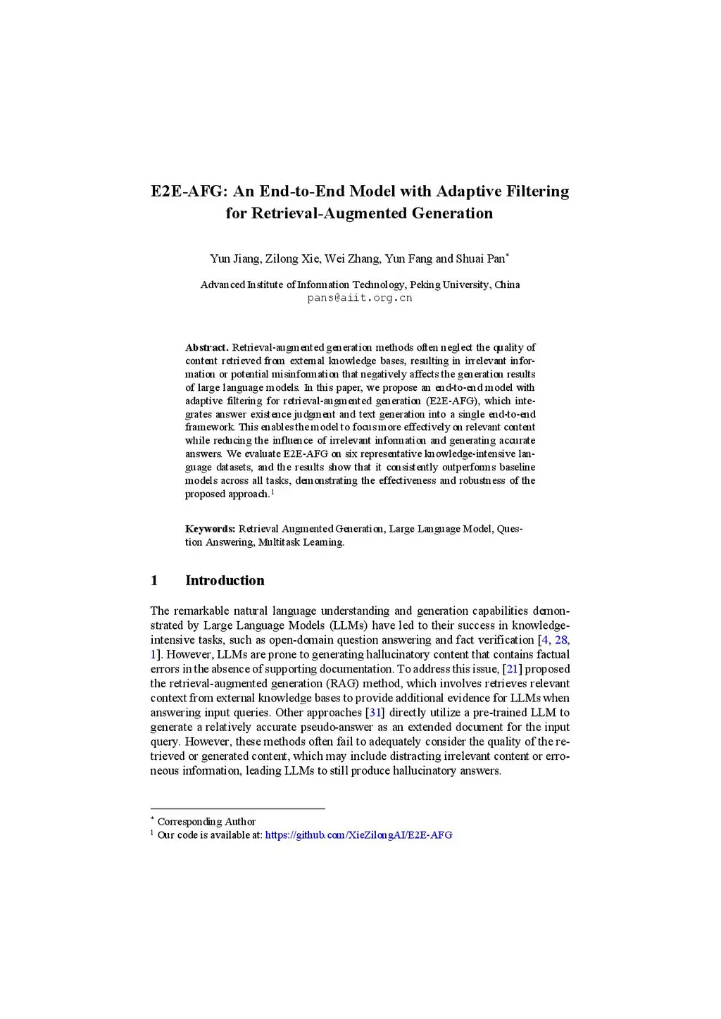 E2E-AFG: An End-to-End Model with Adaptive Filtering for Retrieval-Augmented Generation