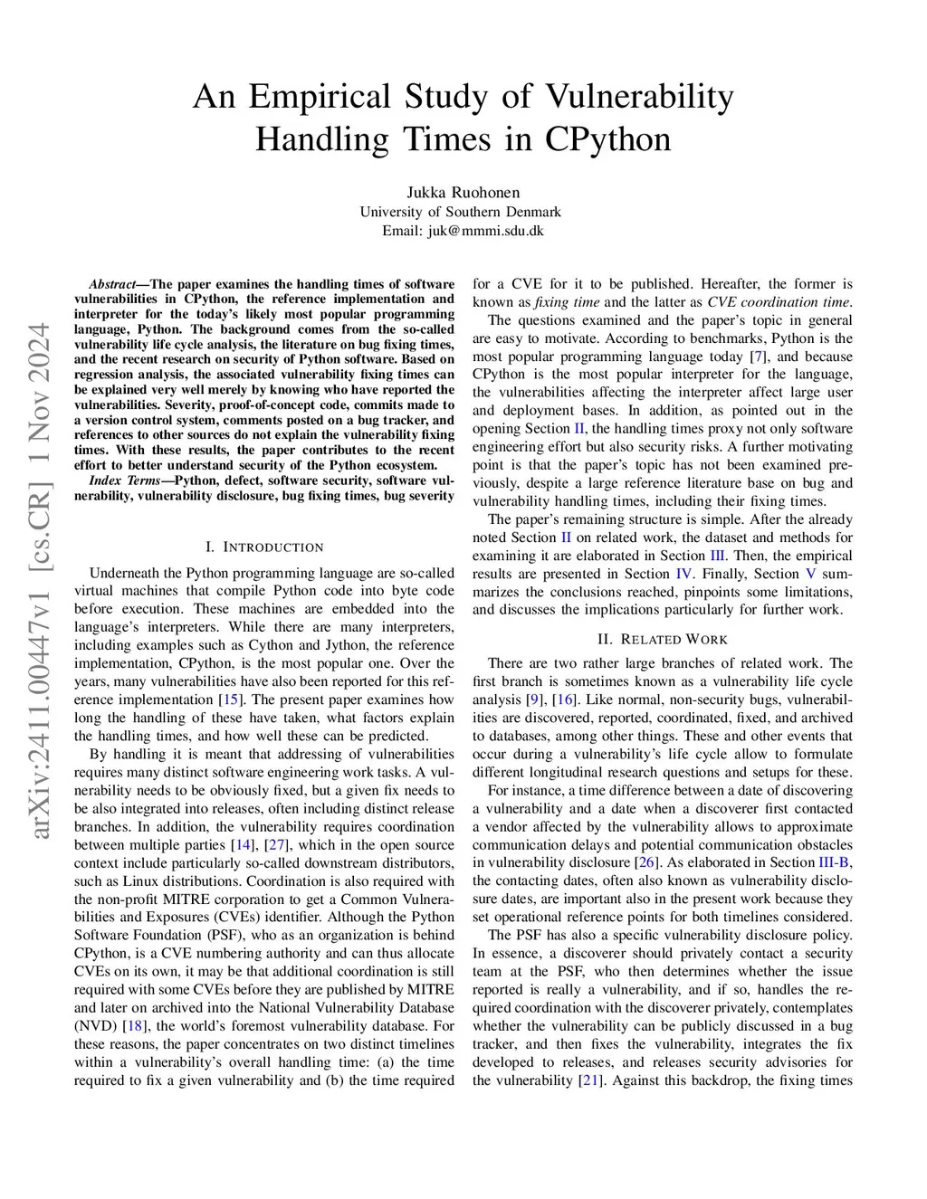 An Empirical Study of Vulnerability Handling Times in CPython