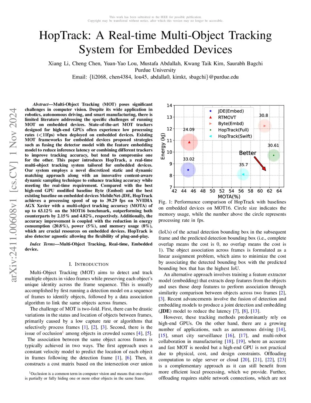 HopTrack: A Real-time Multi-Object Tracking System for Embedded Devices