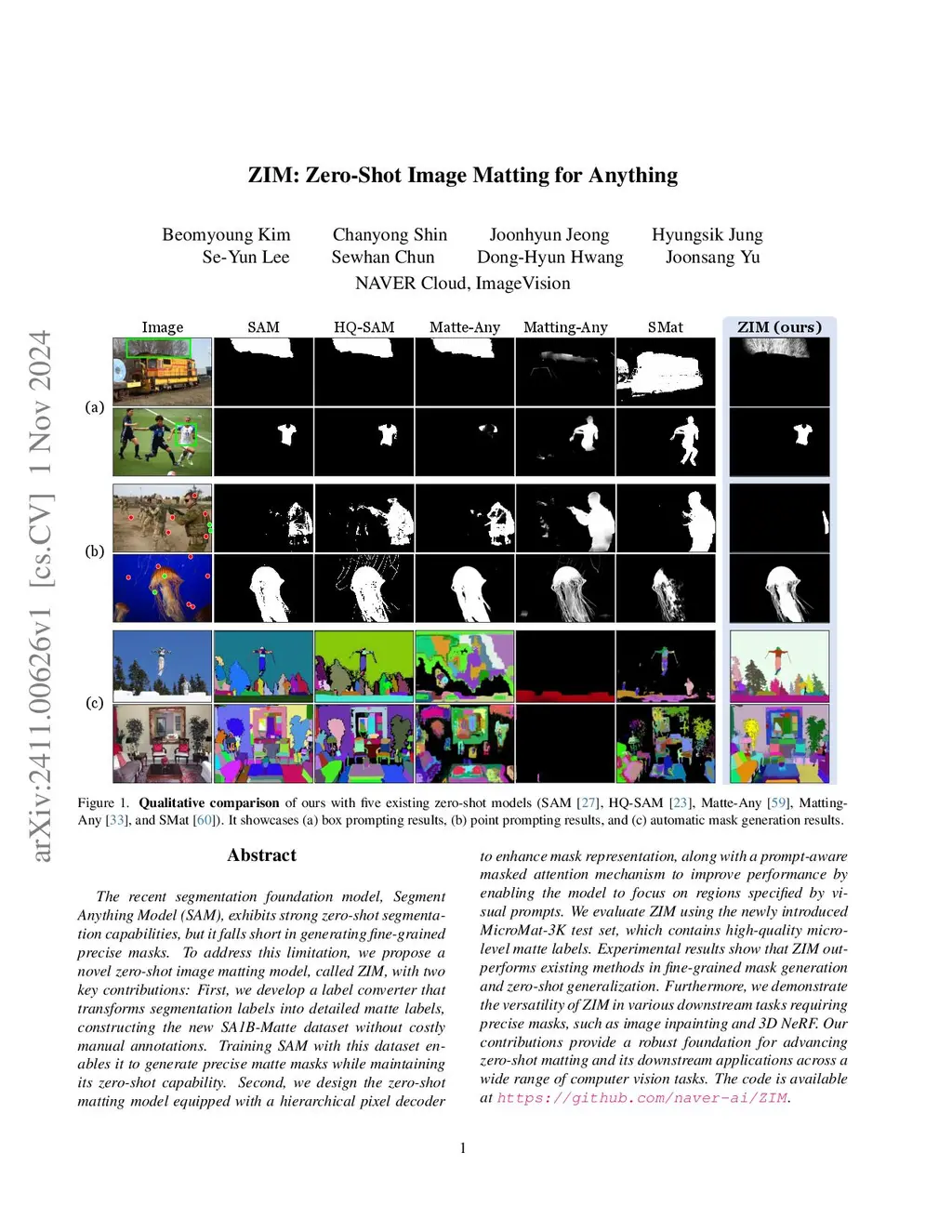 The recent segmentation foundation model, Segment Anything Model (SAM), exhibits strong zero-shot segmentation capabilities, but it falls short in generating fine-grained precise masks. To address this limitation, we propose a novel zero-shot image matting model, called ZIM, with two key contributions: First, we develop a label converter that transforms segmentation labels into detailed matte labels, constructing the new SA1B-Matte dataset without costly manual annotations. Training SAM with this dataset enables it to generate precise matte masks while maintaining its zero-shot capability. Second, we design the zero-shot matting model equipped with a hierarchical pixel decoder to enhance mask representation, along with a prompt-aware masked attention mechanism to improve performance by enabling the model to focus on regions specified by visual prompts. We evaluate ZIM using the newly introduced MicroMat-3K test set, which contains high-quality micro-level matte labels. Experimental results show that ZIM outperforms existing methods in fine-grained mask generation and zero-shot generalization. Furthermore, we demonstrate the versatility of ZIM in various downstream tasks requiring precise masks, such as image inpainting and 3D NeRF. Our contributions provide a robust foundation for advancing zero-shot matting and its downstream applications across a wide range of computer vision tasks. The code is available atthis https URL.
